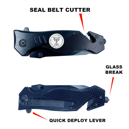 Israeli Defense Forces IDF Israel Flag 3-in-1 Military Tactical Rescue knife tool with Seatbelt Cutter, Steel Serrated Blade, Glass Breaker