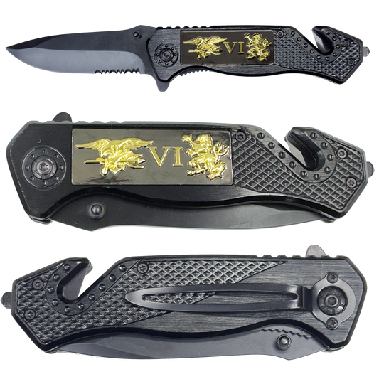 Navy Seal Team 6 Naval Special Warfare Trident Pocket Knife 3-in-1 Rescue tool