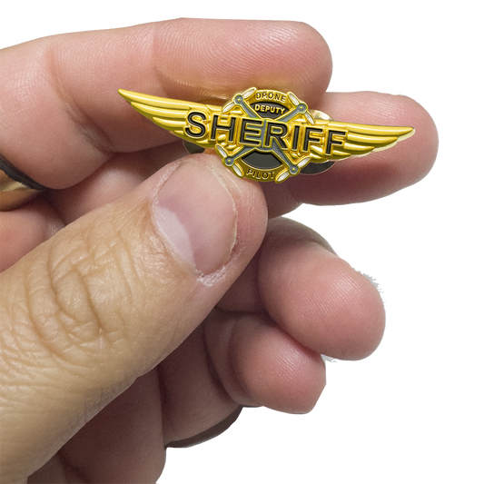 EL17-17 Small Deputy Sheriff Police Drone Pilot Full size UAS FAA Commercial Wings pin for uniform wear