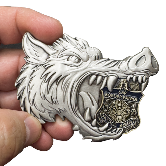 BL13-16 Texas Border Patrol Agent Hog Wild Boar Challenge Coin Alligator Alcatraz style