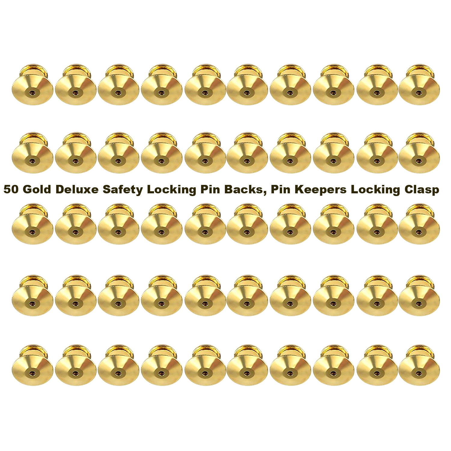 50 Gold Deluxe Safety Locking Pin Backs, Pin Keepers Locking Clasps Scouts Uniform Nameplate
