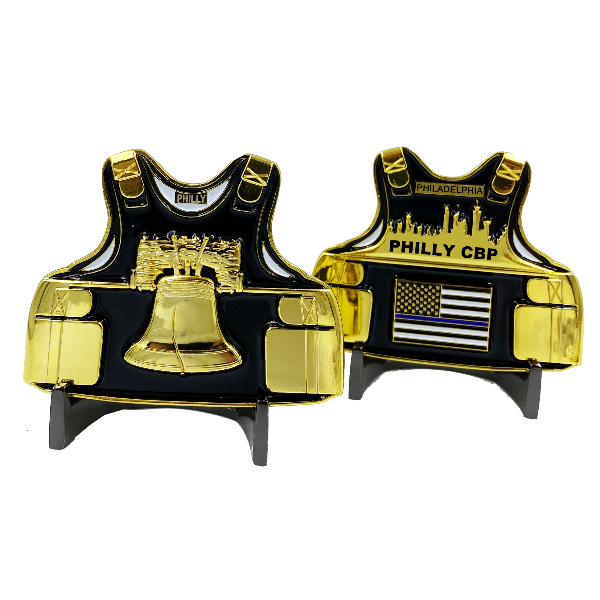 AA-002 Philly CBP Police Body Armor Thin Blue Line Flag Challenge Coins Philadelphia Liberty Bell Border Patrol Field Ops