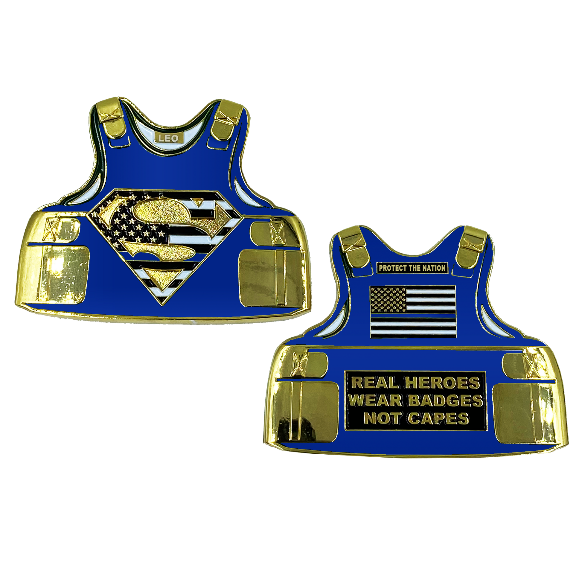AA-004 Police Body Armor Challenge Coin thin blue line Capes CBP FBI FAM Sheriff LAPD Boston Chicago