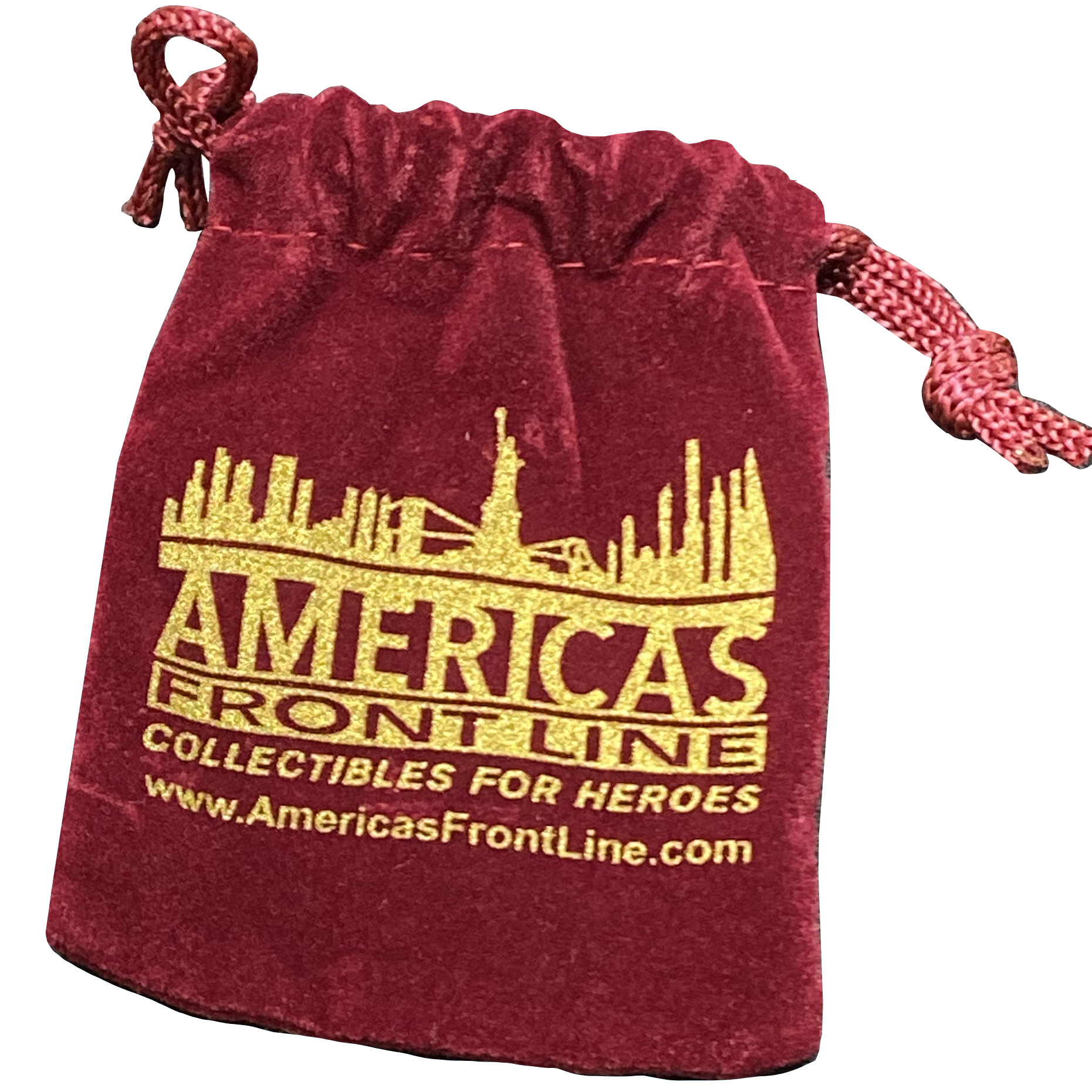 Christmas ornament with red ribbon. Comes with a free velvet gift bag.
