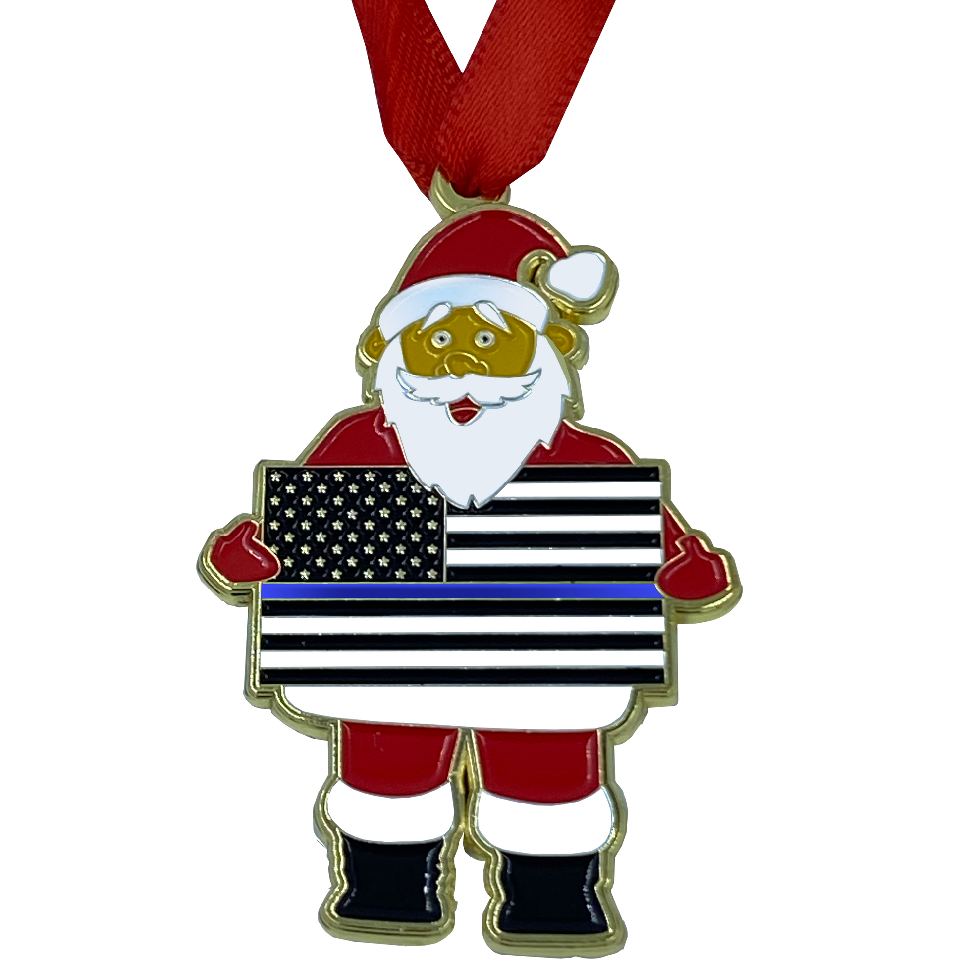 BL1-12A Thin Blue Line Christmas Ornament Santa Police Challenge Coin LAPD NYPD CBP FBI FAM ATF USSS
