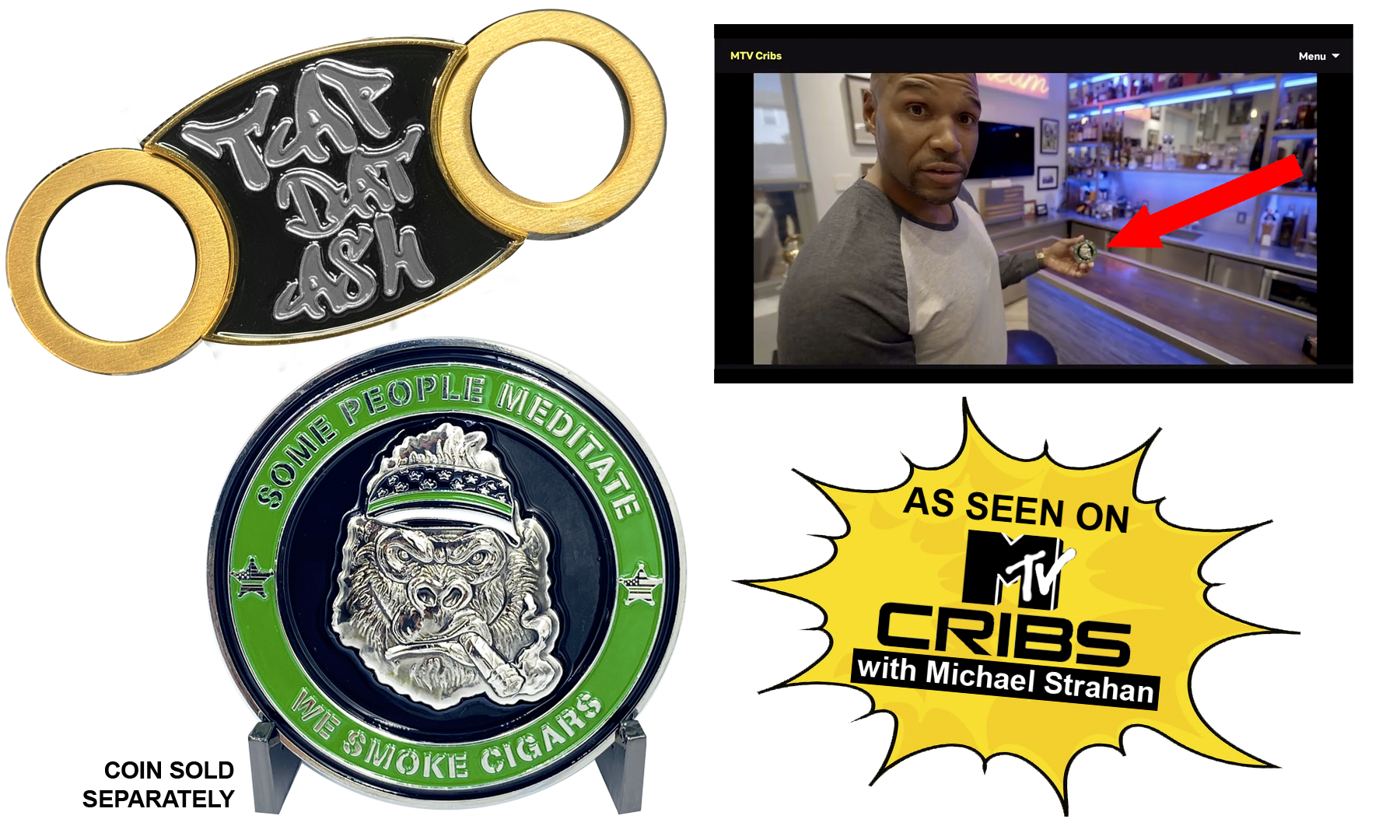BL18-014 MTV Cribs Michael Strahan episode matching gray Cigar Cutter for Tap Dat Ash Cigar Coin