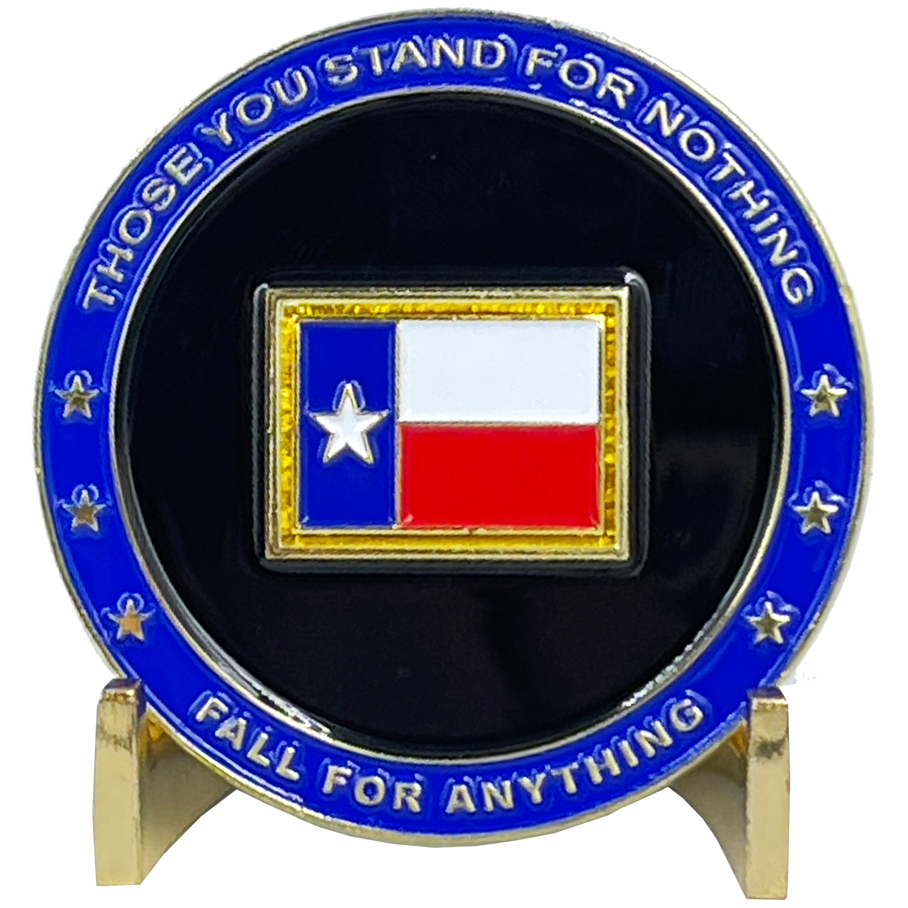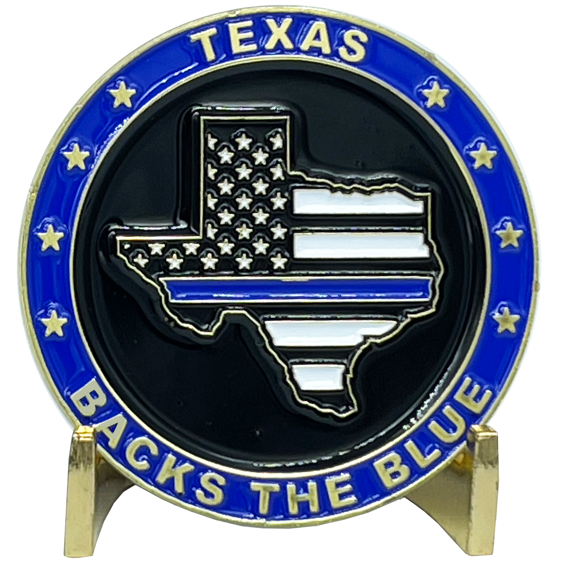 BL3-005 Texas BACKS THE BLUE Thin Blue Line Police Challenge Coin with free matching State Flag pin back the blue Sheriff trooper