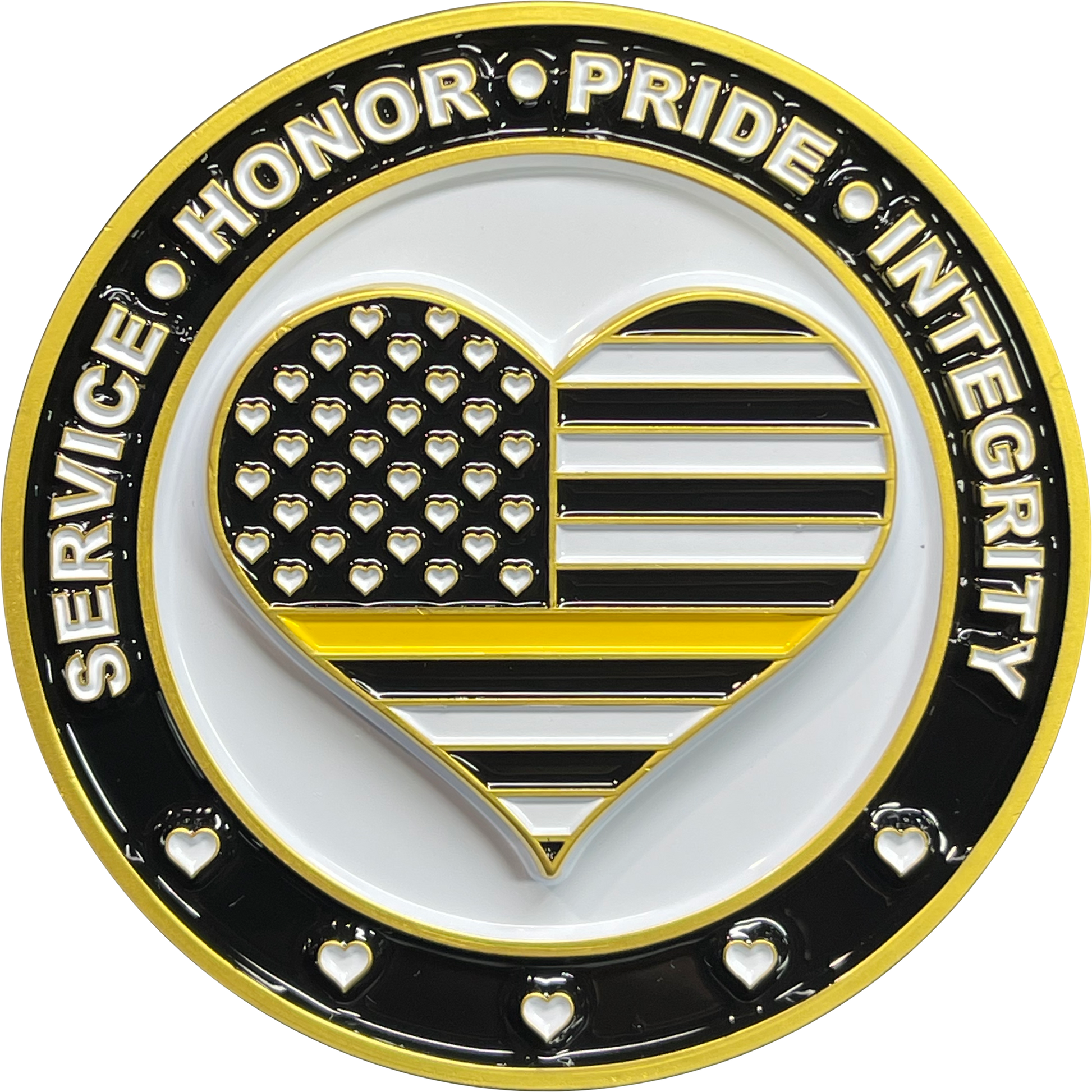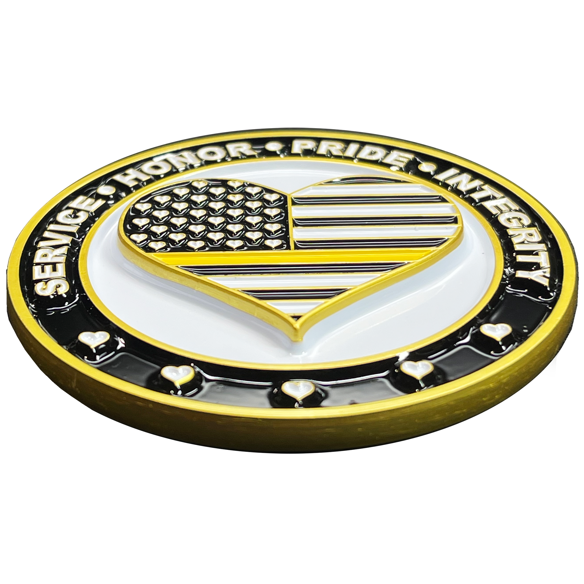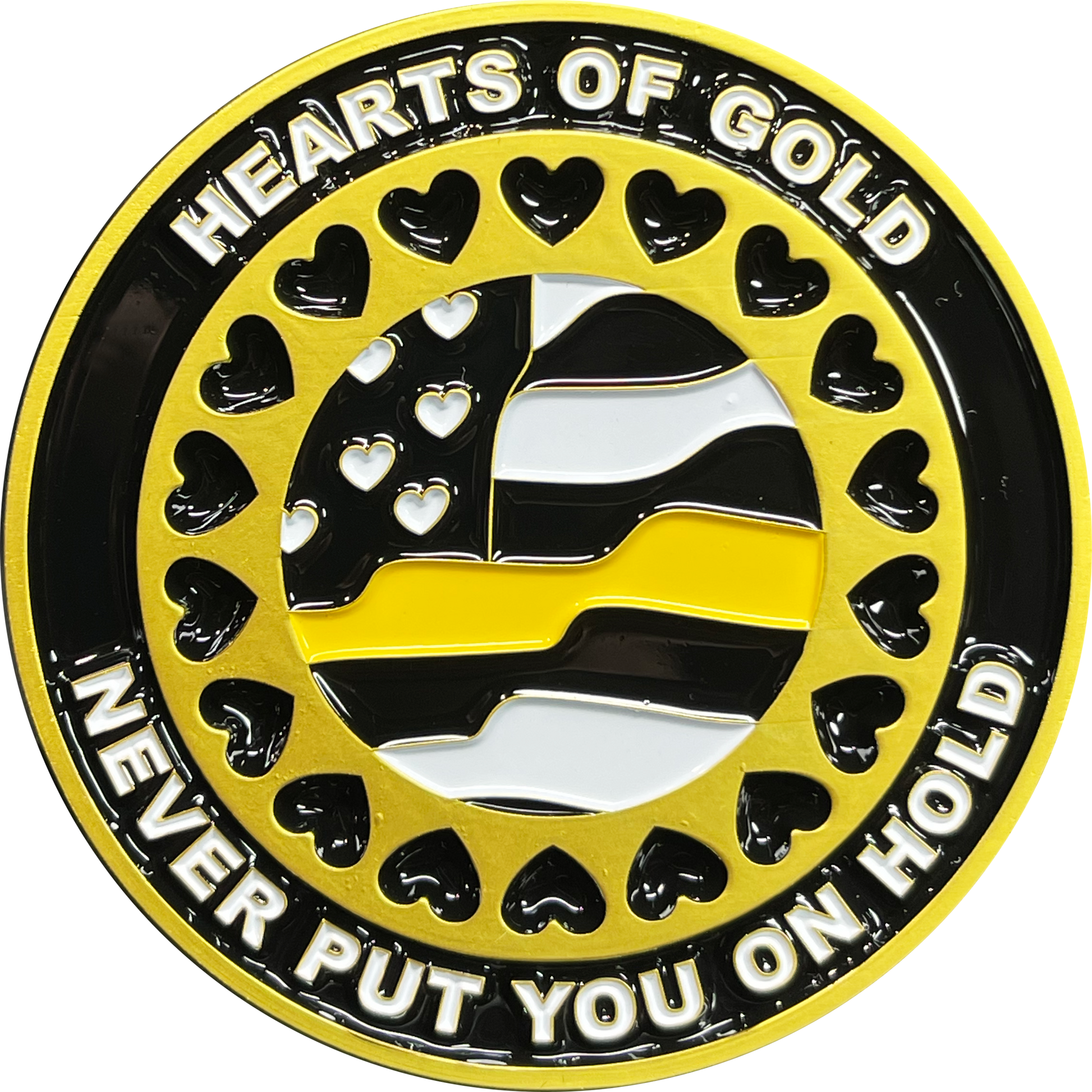 BL3-013 Emergency 911 Police Dispatcher Heart of Gold Challenge Coin Thin Gold Line