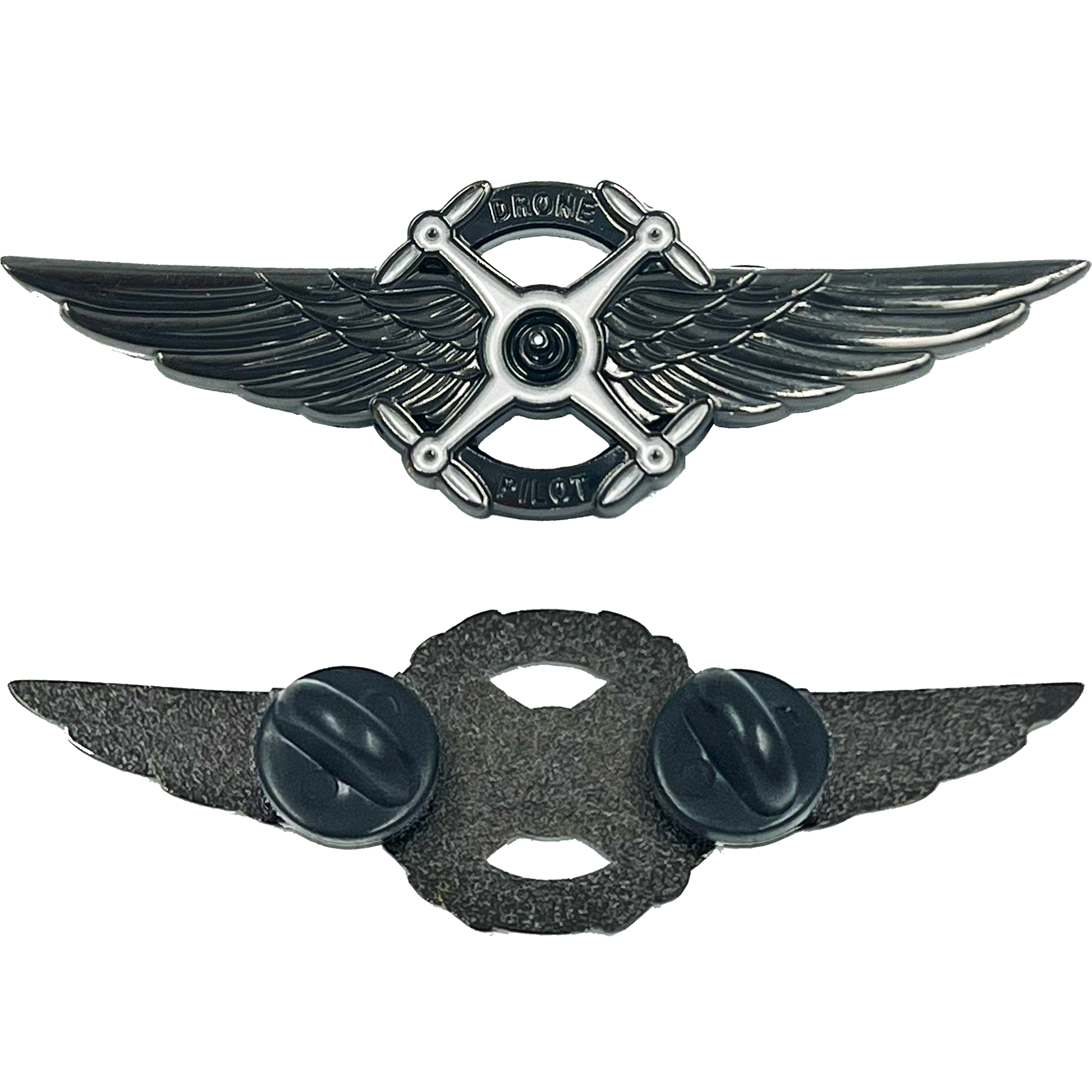 BL5-013 Full size UAS FAA Commercial Drone Pilot Wings pin Black Tactical