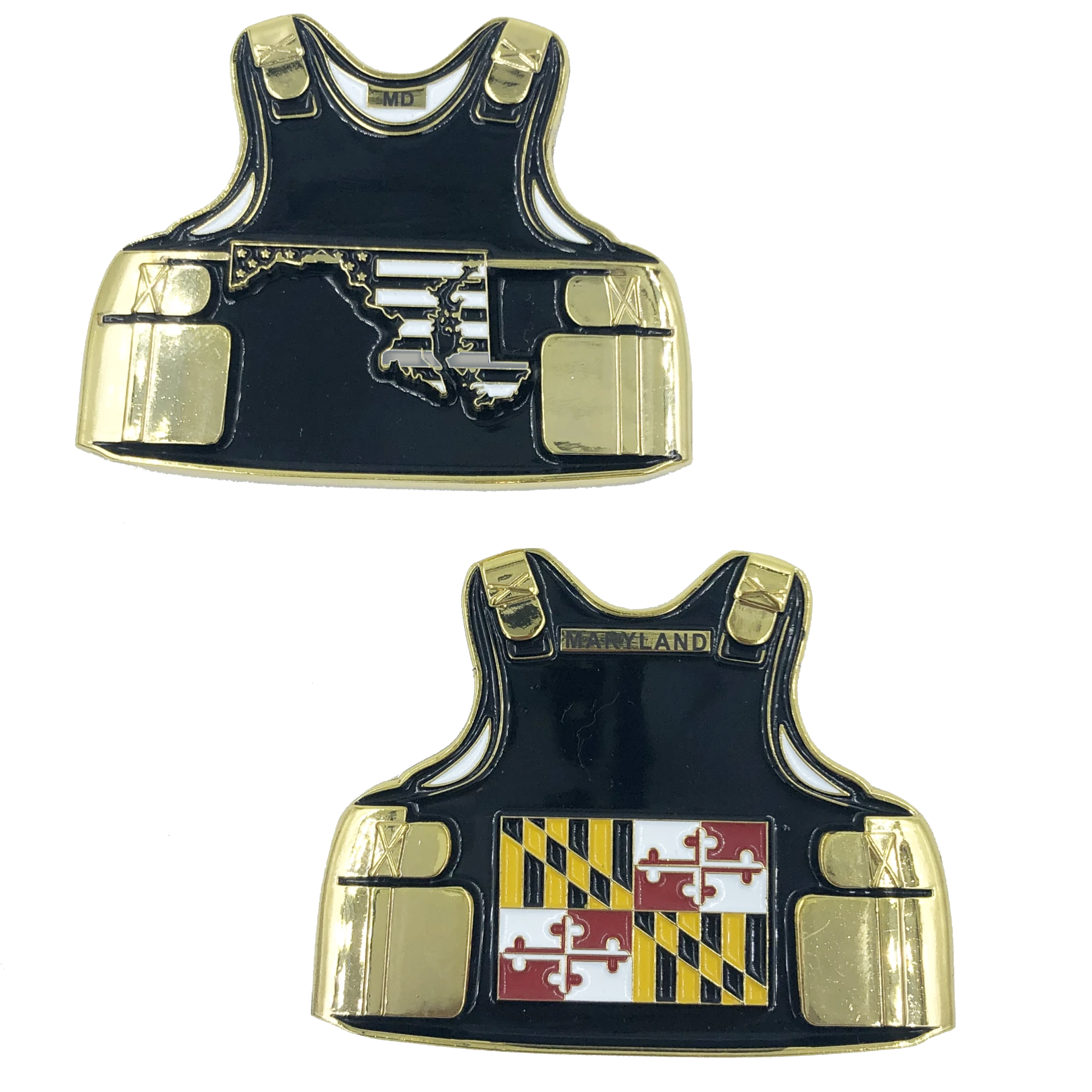 BL8-011 Maryland CO Correctional Officer Corrections Jail Prison Guard Thin Gray Line Police Body Armor State Flag Challenge Coins