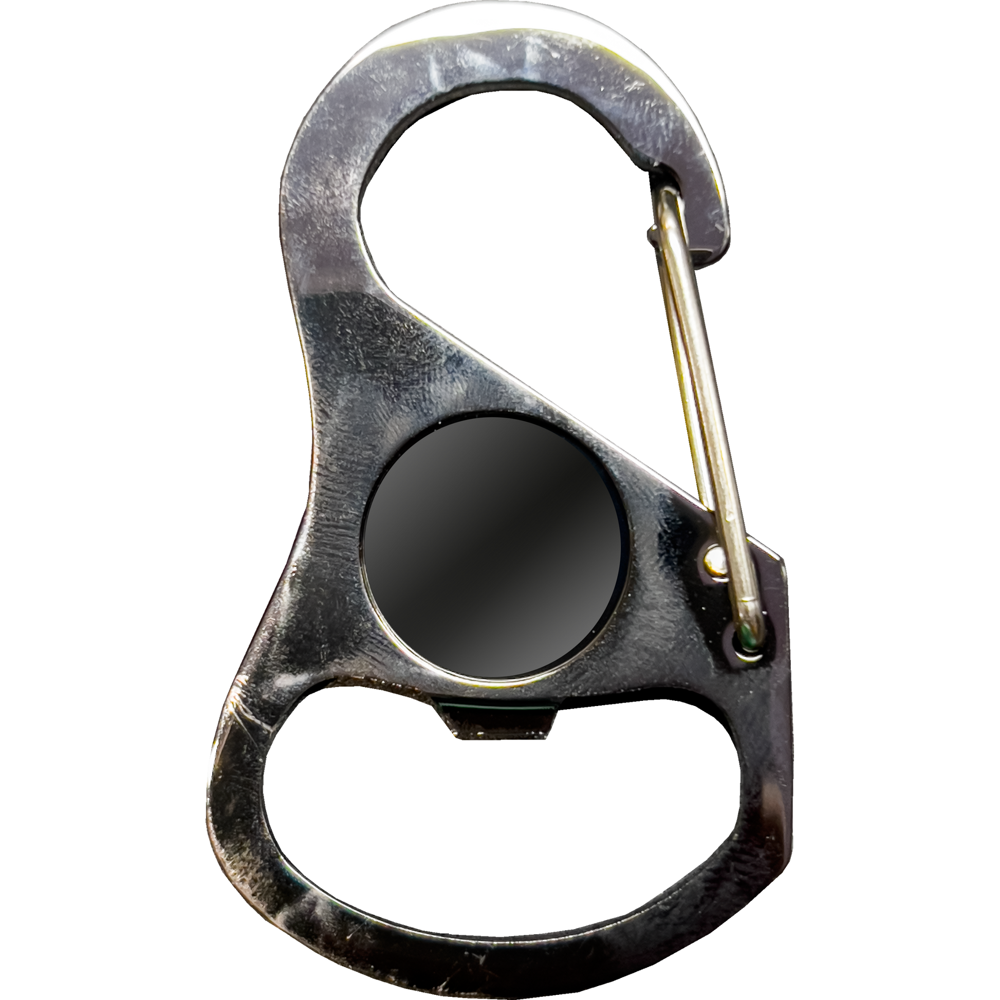 Four 2 inch double sided carabiner clips on a 2.75 inch black nickel plated carabiner with bottle opener function. Not for climbing. ULMG-3323