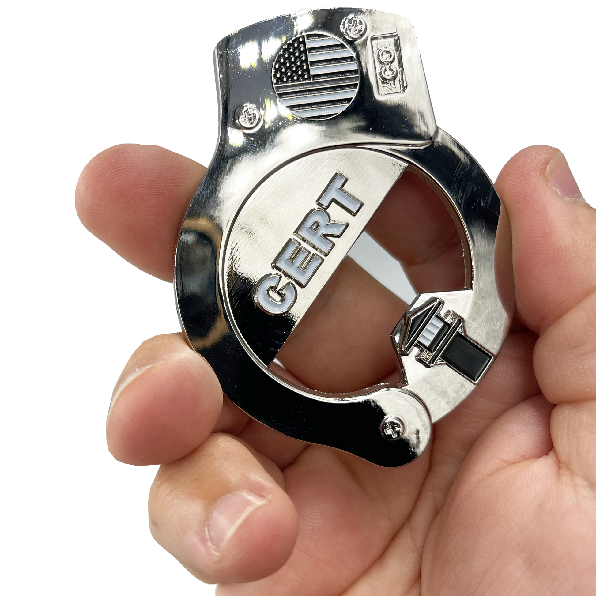 BL4-011 CERT Thin Gray Line HANDCUFFs Challenge Coin Bottle Opener Beard Gang Skull Corrections Correctional Officer