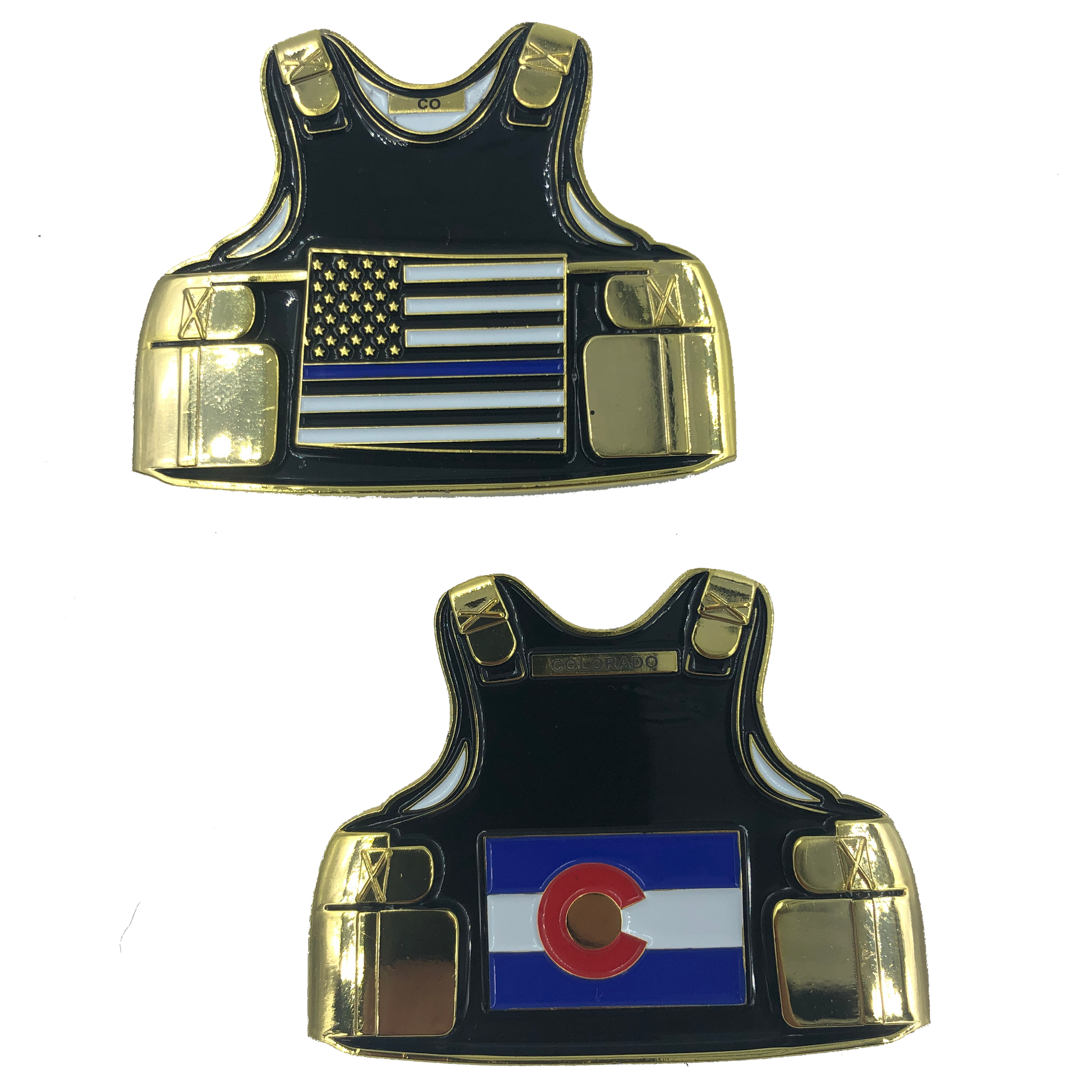 D-007 Colorado LEO Thin Blue Line Police Body Armor State Flag Challenge Coins