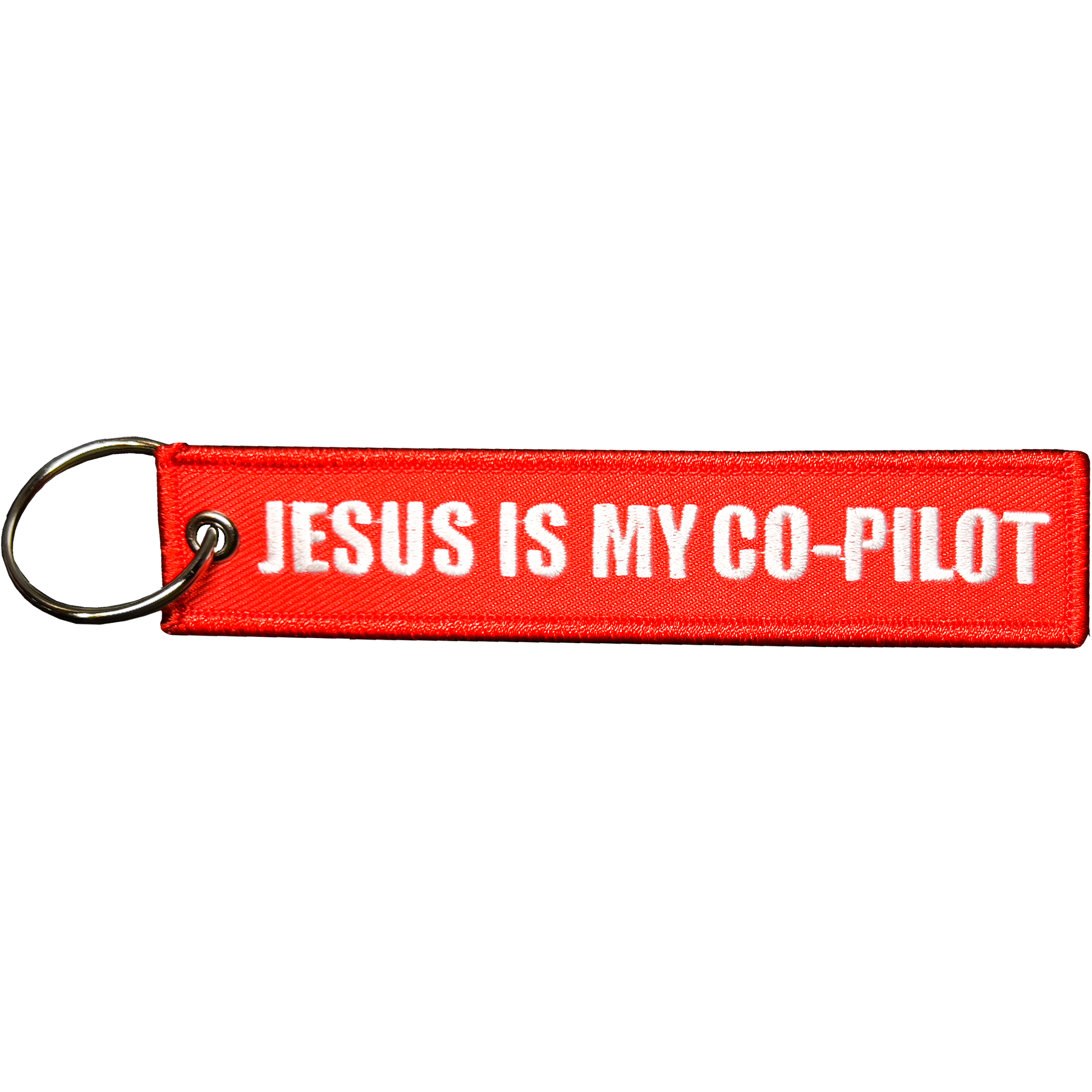 EL11-021 Jesus is my Co-Pilot Amen CREW Keychain or Luggage Tag or zipper pull Fish Spirit
