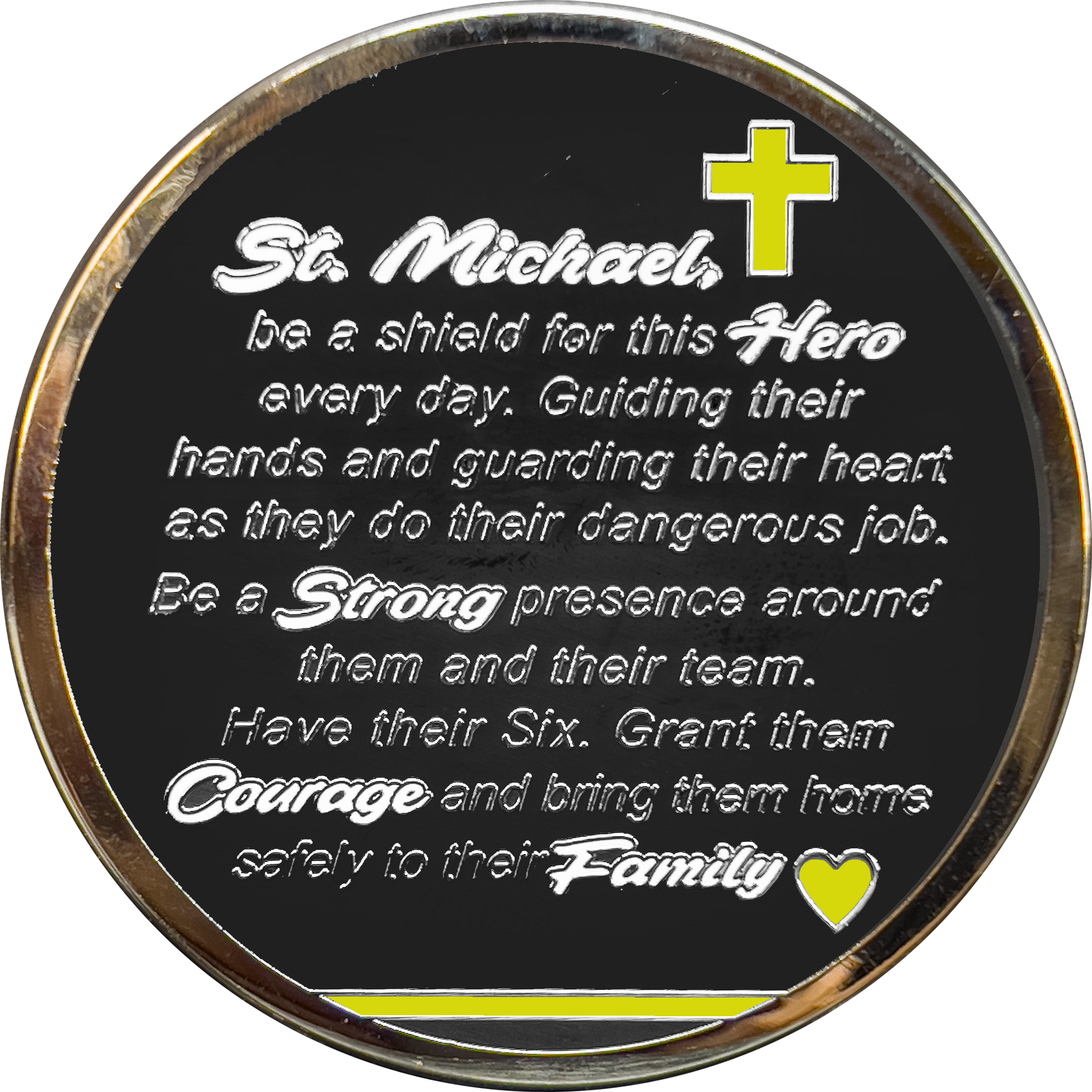 GL7-006 911 Emergency Police Dispatcher Prayer Saint Michael Protect Us Matthew 14:30 Challenge Coin Thin Gold Line
