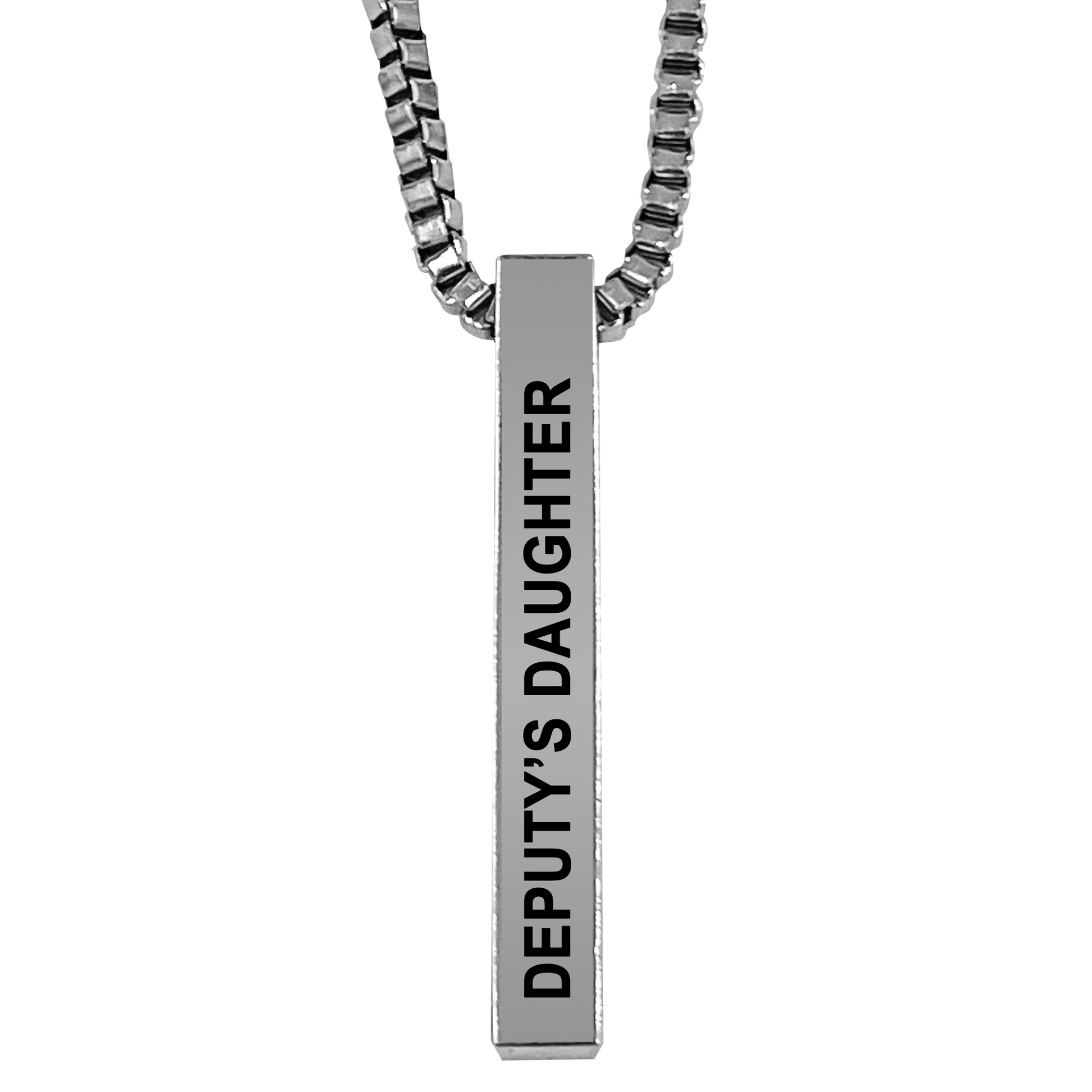 Deputy's Daughter Silver Plated Pillar Bar Pendant Necklace Gift Mother's Day Christmas Holiday Anniversary Police Sheriff Officer First Responder Law Enforcement