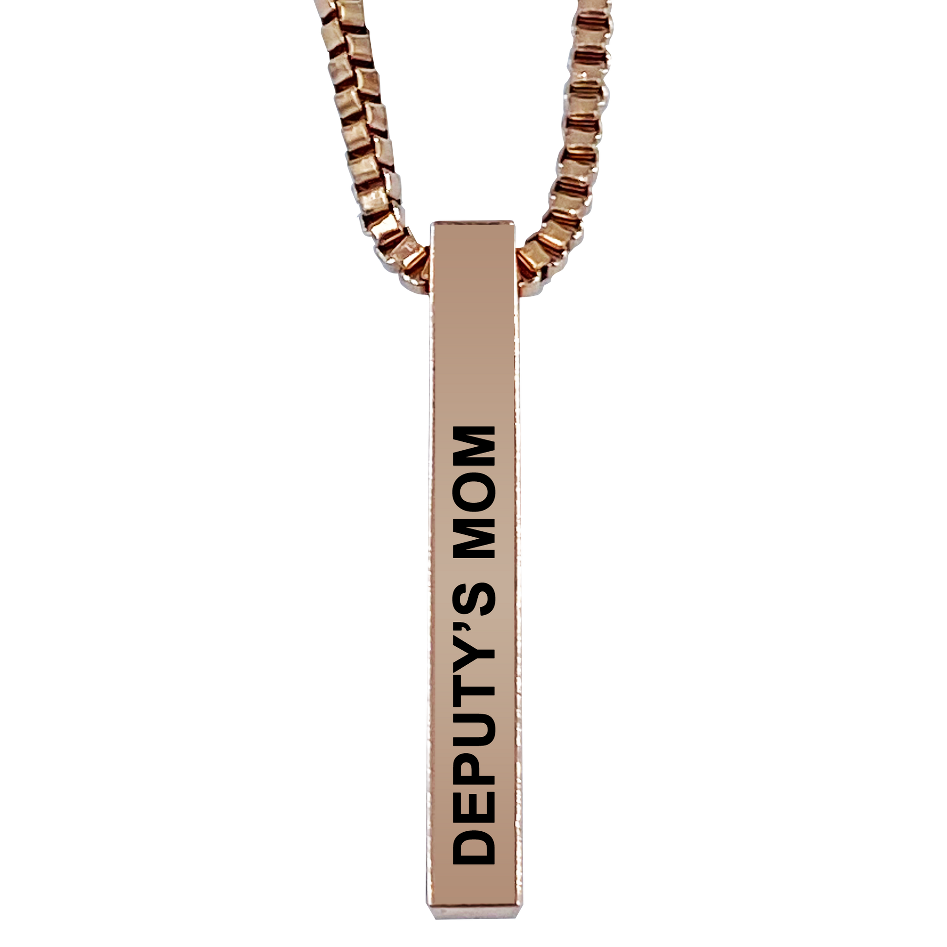 Deputy's Mom Rose Gold Plated Pillar Bar Pendant Necklace Gift Mother's Day Christmas Holiday Anniversary Police Sheriff Officer First Responder Law Enforcement