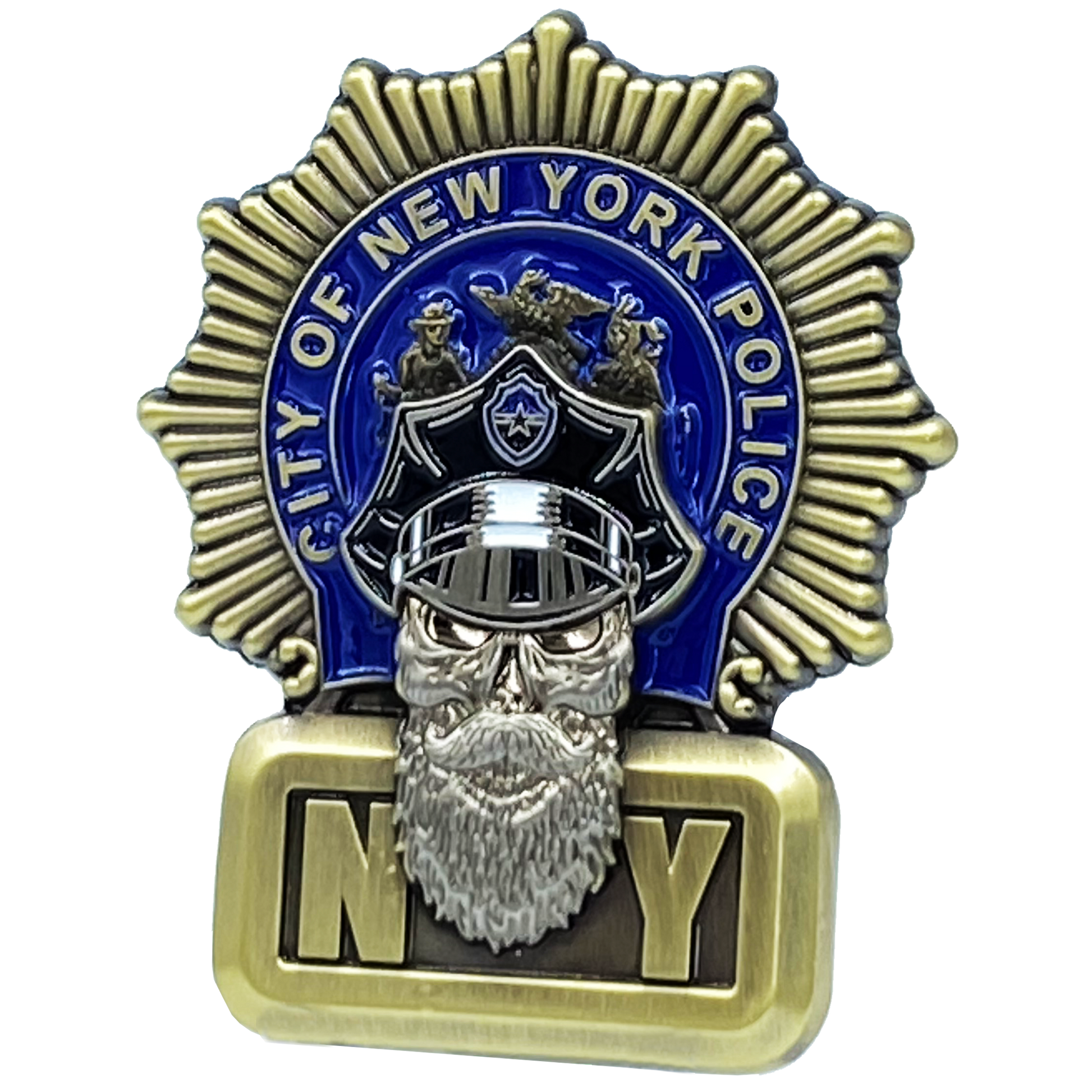 EL1-013 NYPD Detective Beard Gang Skull Challenge Coin Thin Blue Line Back the Blue New York City Police Department