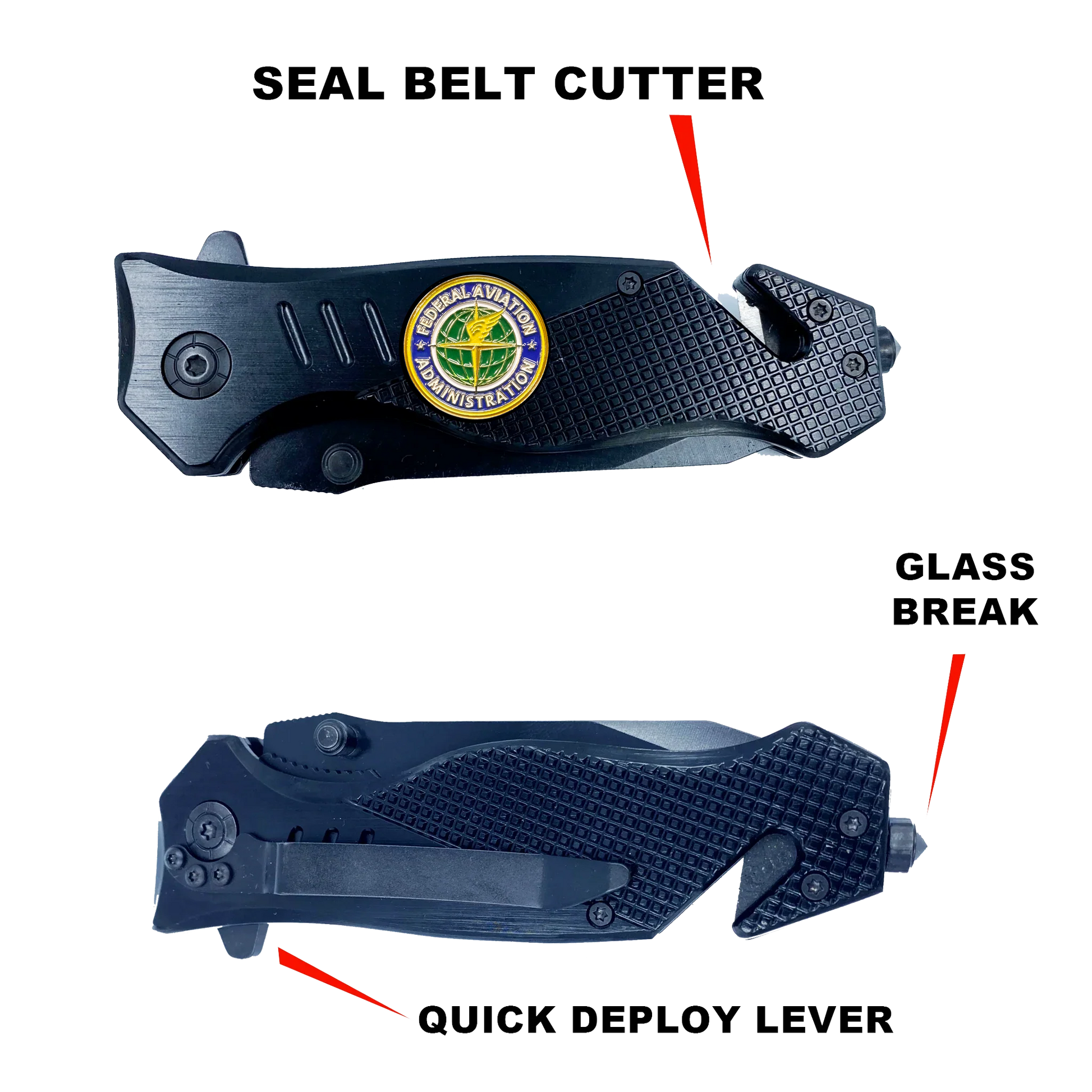 FAA Federal Aviation Administration 3-in-1 Tactical Rescue tool knife with Seatbelt Cutter Steel Serrated Blade Glass break