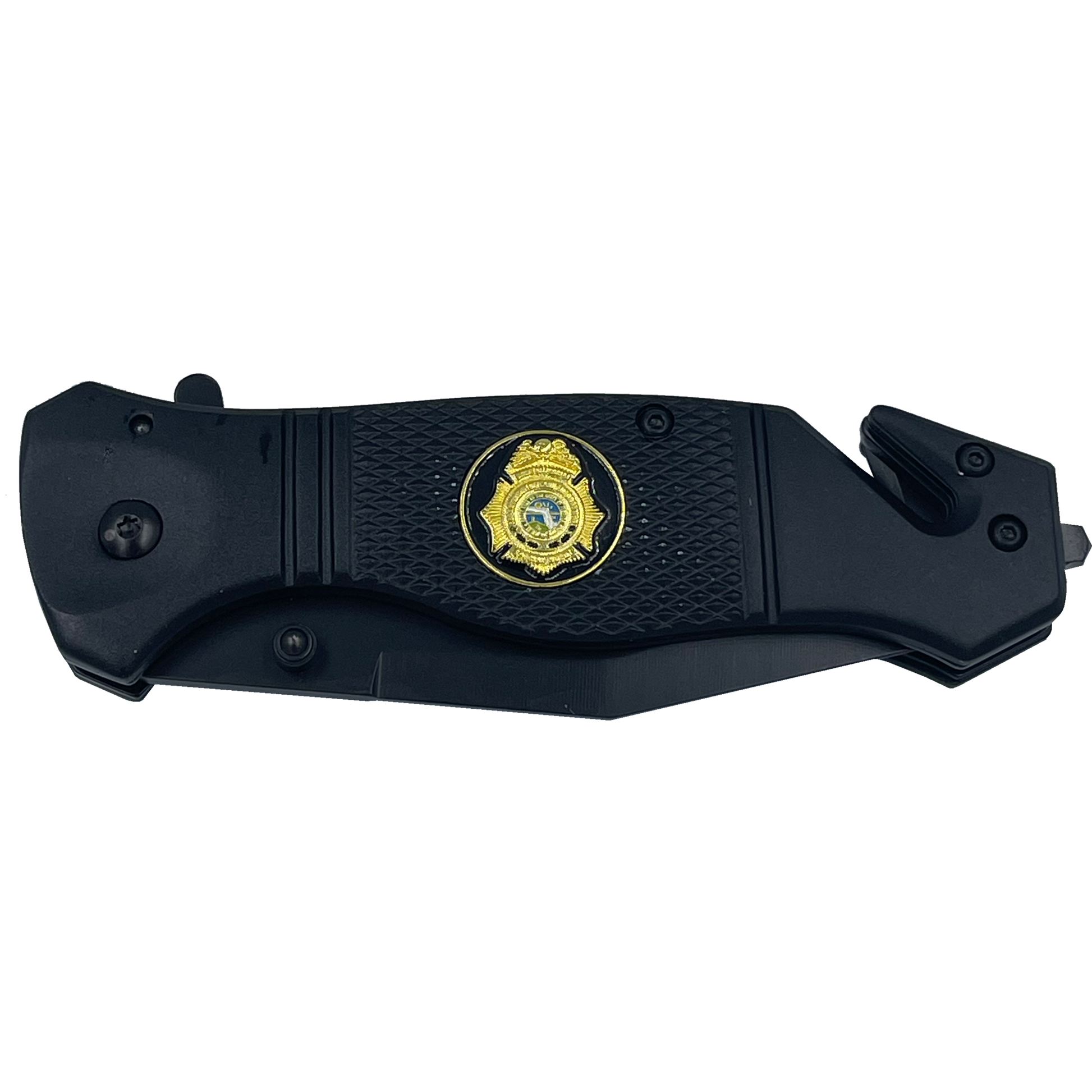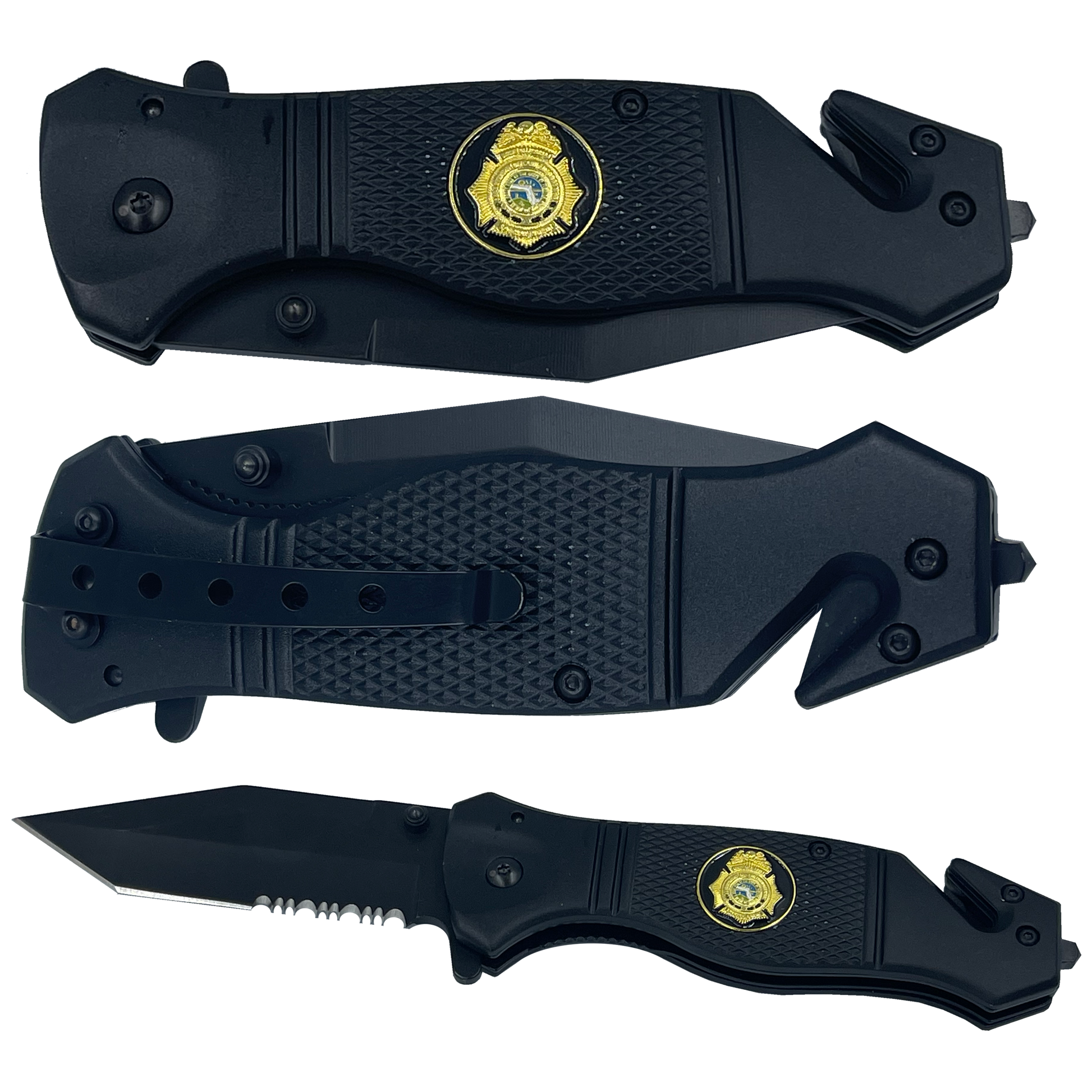 FDLE collectible 3-in-1 Police Tactical Rescue knife tool with Seatbelt Cutter, Steel Serrated Blade, Glass Breaker Special Agent
