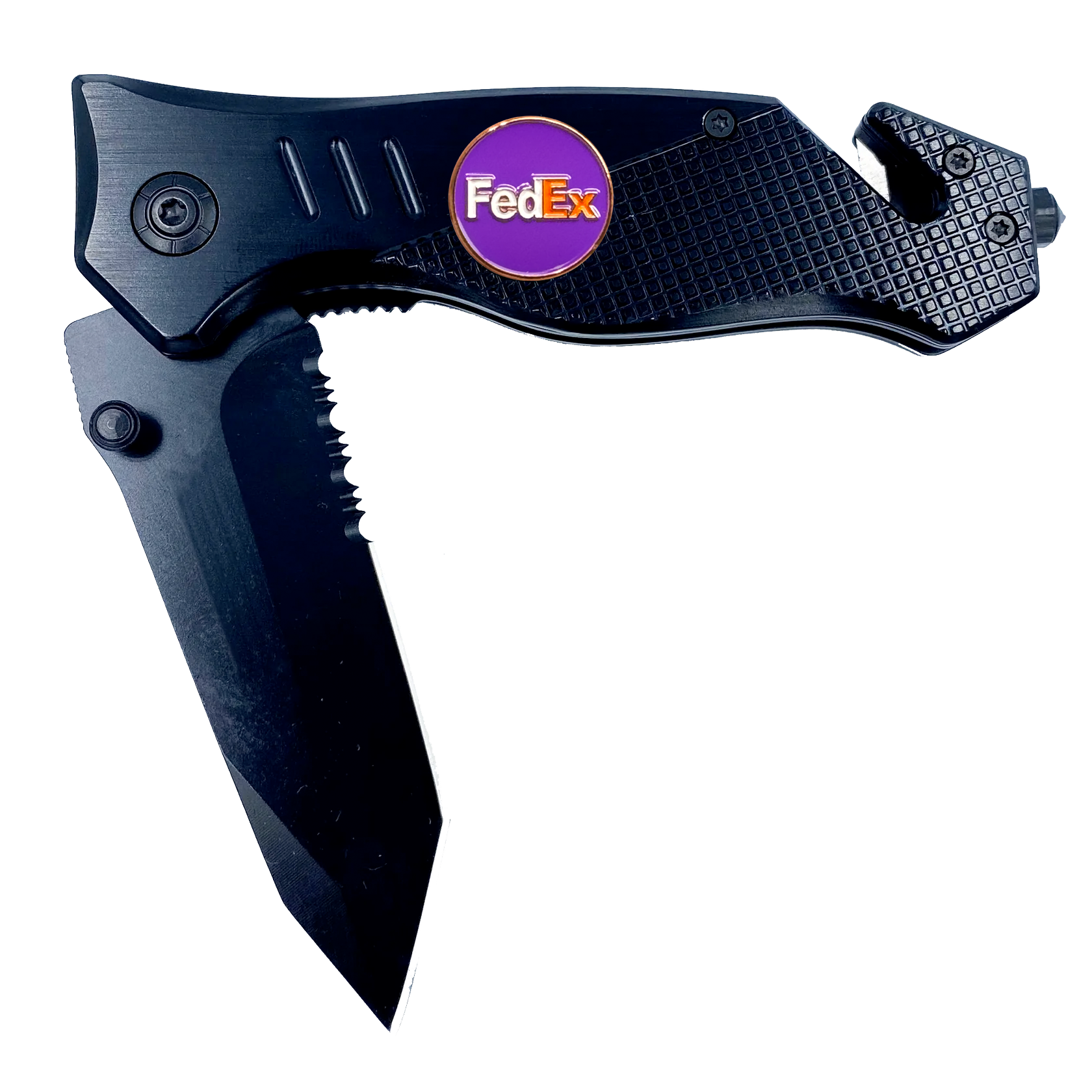 Box Opener Rescue Knife for Fedex Driver 3-in-1 tool with Seatbelt Cutter Steel Serrated Blade Glass Breaker