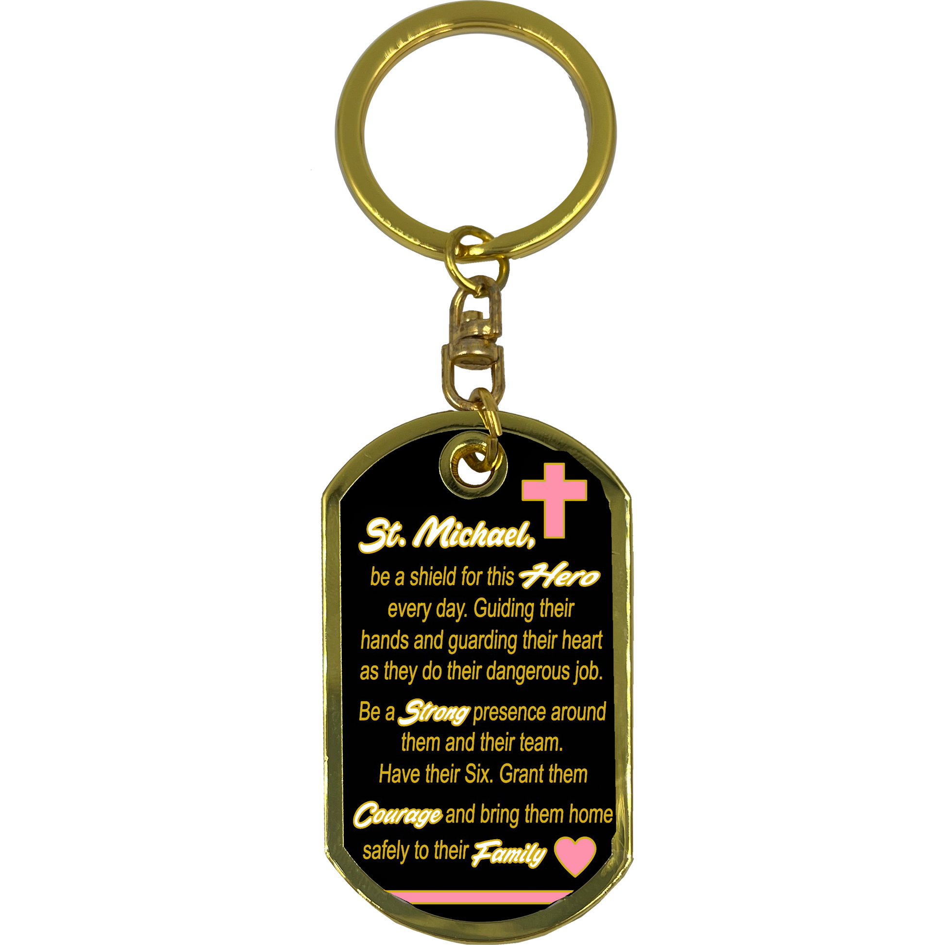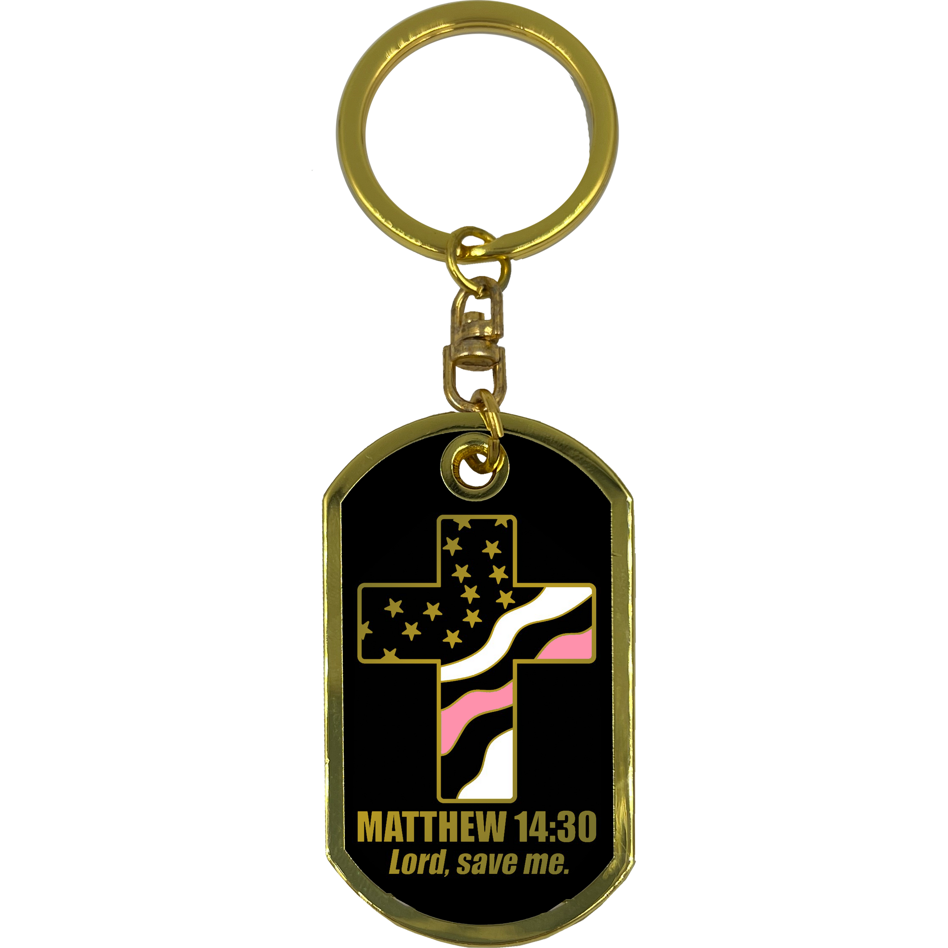 GL5-008 Breast Cancer Awareness Survivor Prayer Saint Michael Corrections Protect Us Matthew 14:30 Challenge Coin Dog Tag Keychain Thin Pink Line