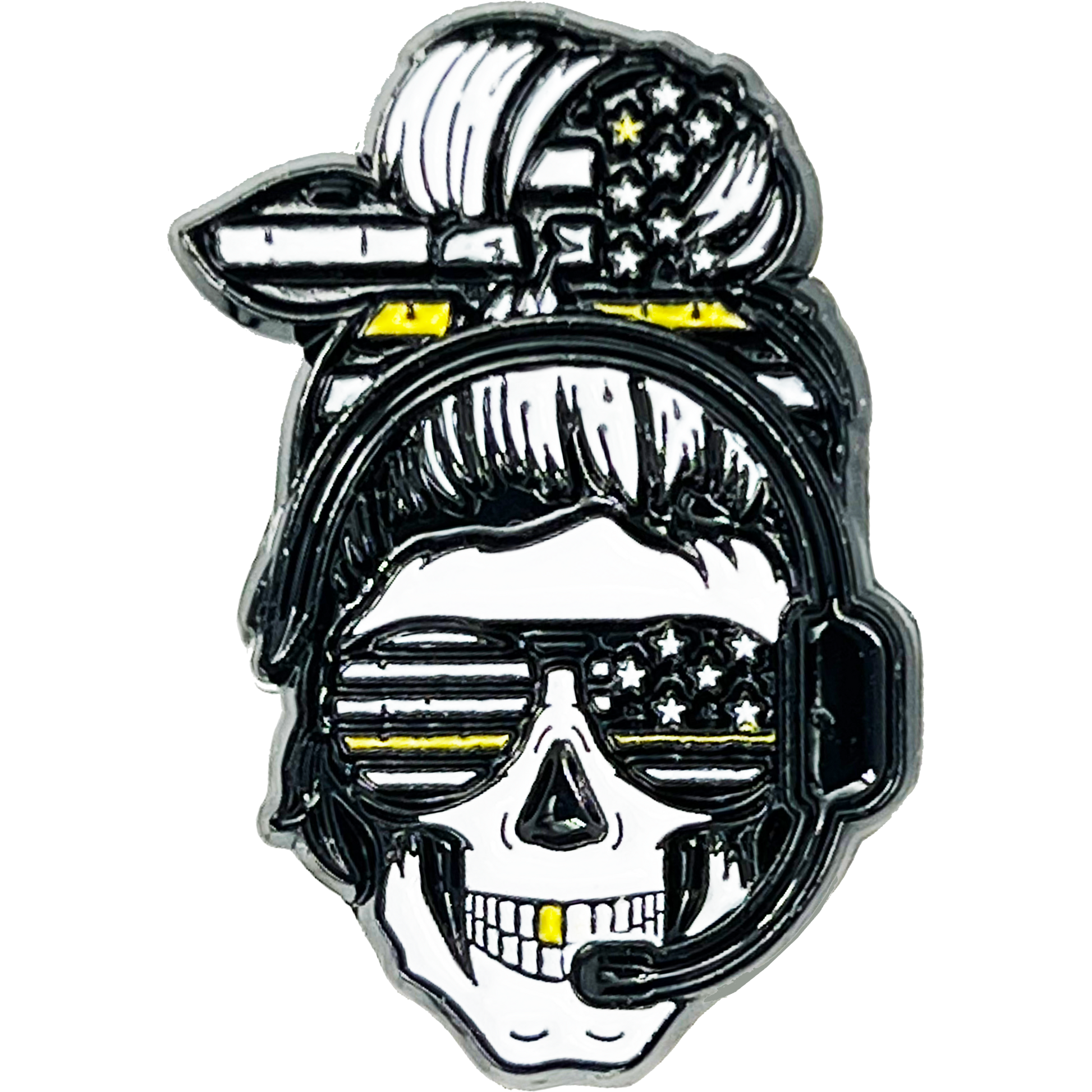 EL13-021 Headset Hero Thin Gold Line Line pin american flag yellow 911 Emergency Dispatcher Trucker pins