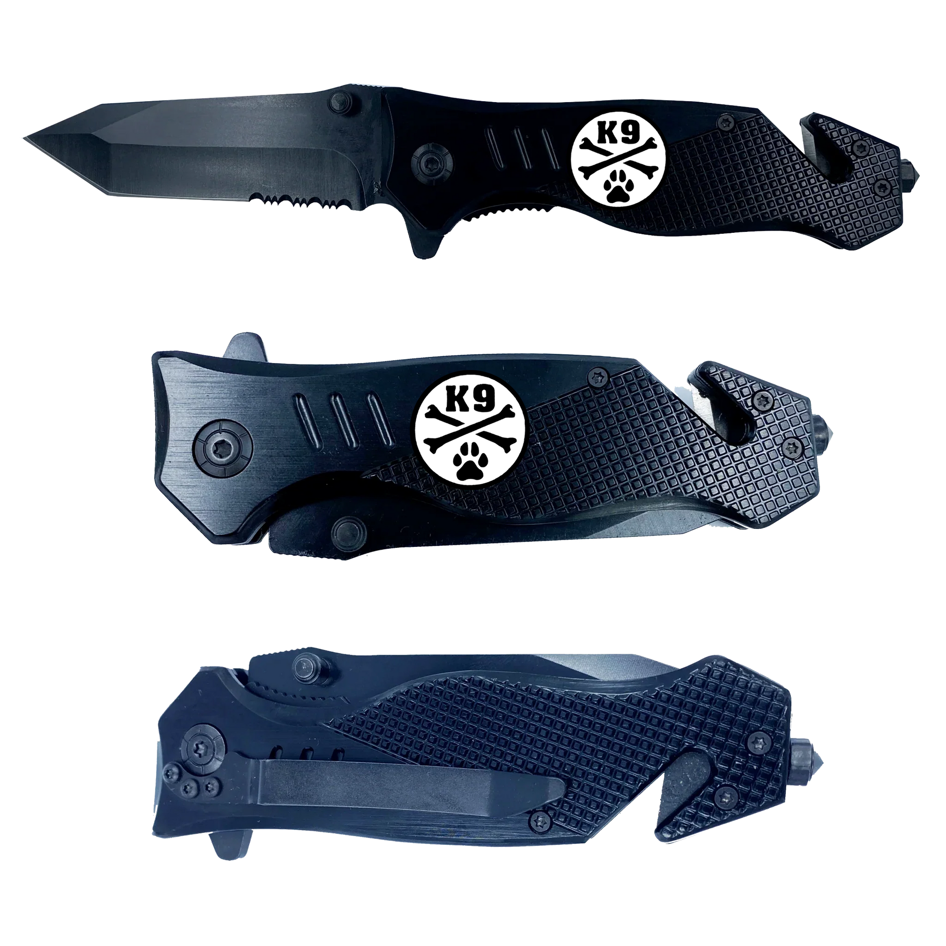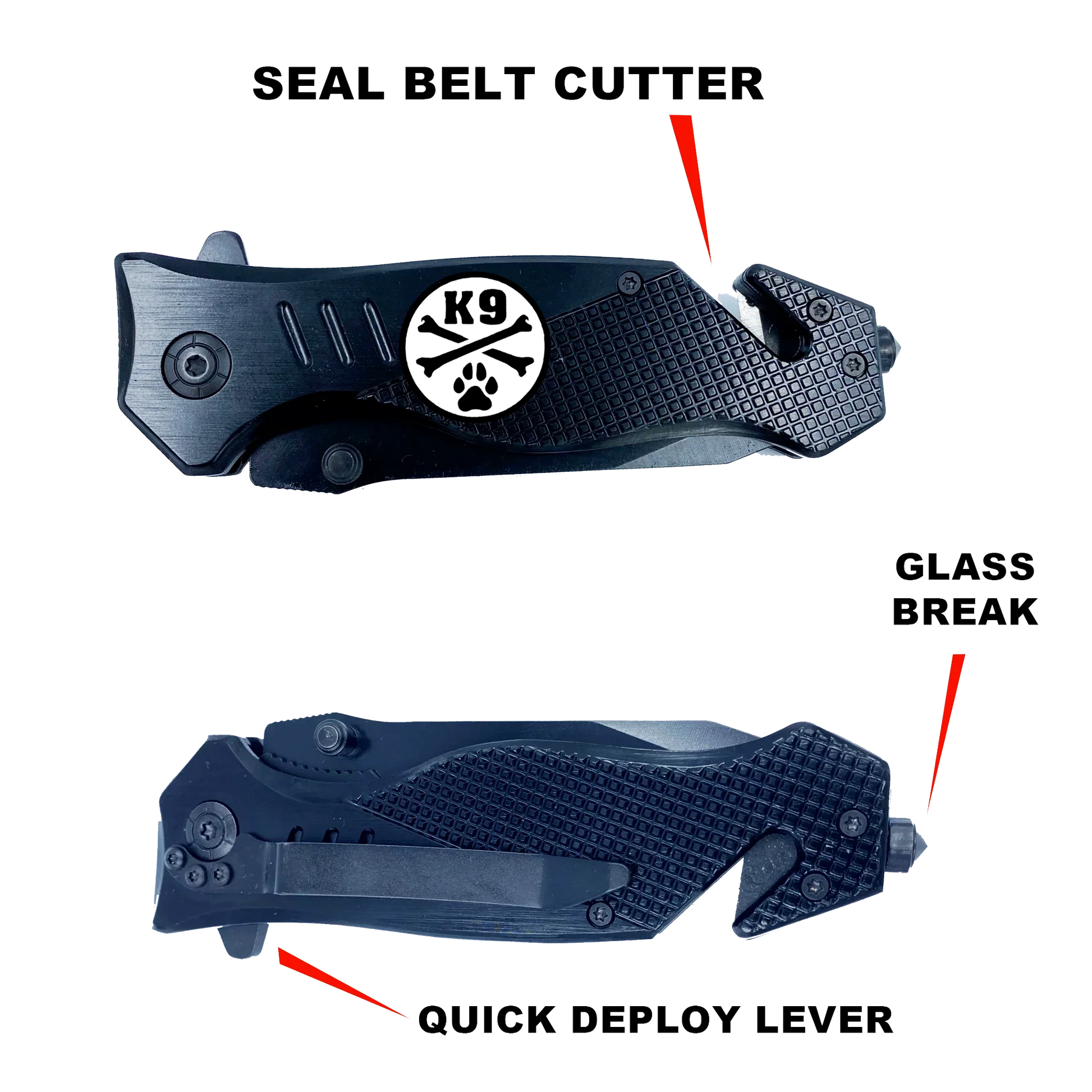 K9 Handler Police Military 3-in-1 Tactical Veteran Rescue tool knife with Seatbelt Cutter Steel Serrated Blade Glass Canine Army