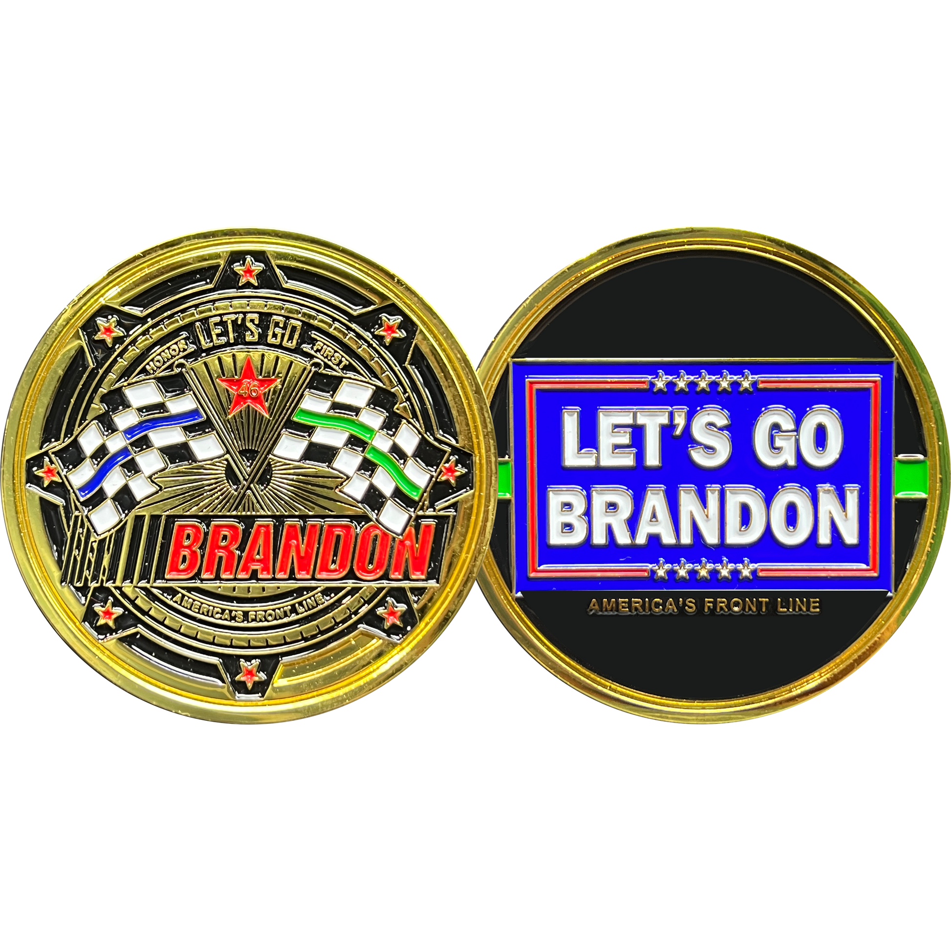 BL5-016 Let's Go Brandon Thin Green Line Thin Blue Line GREEN BORDER PATROL version Military Challenge Coin Honor First MAGA Trump 2024 Police