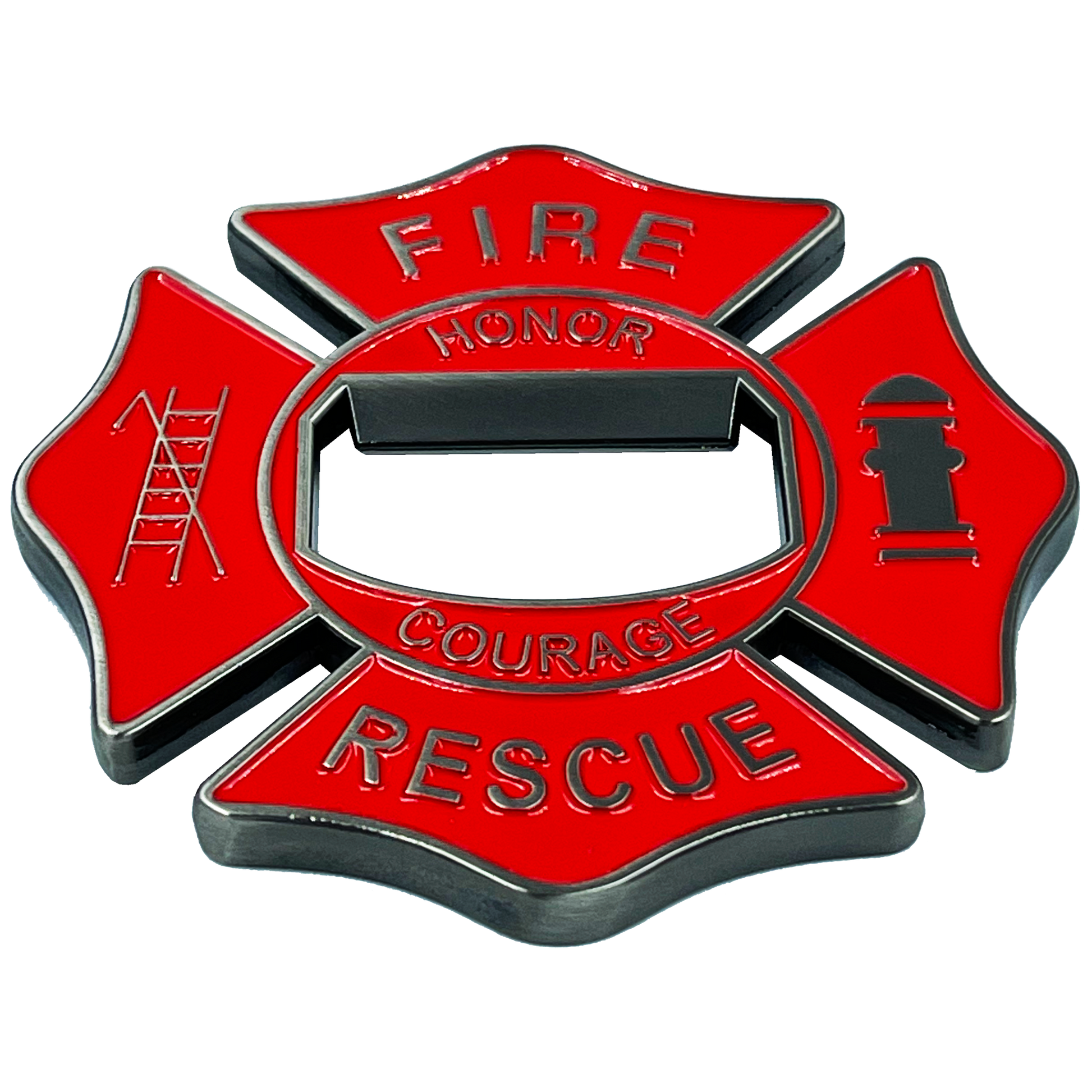 BL14-016 Maltese Cross Fire Department Bottle Opener American Flag Challenge Coin Fire Fighter