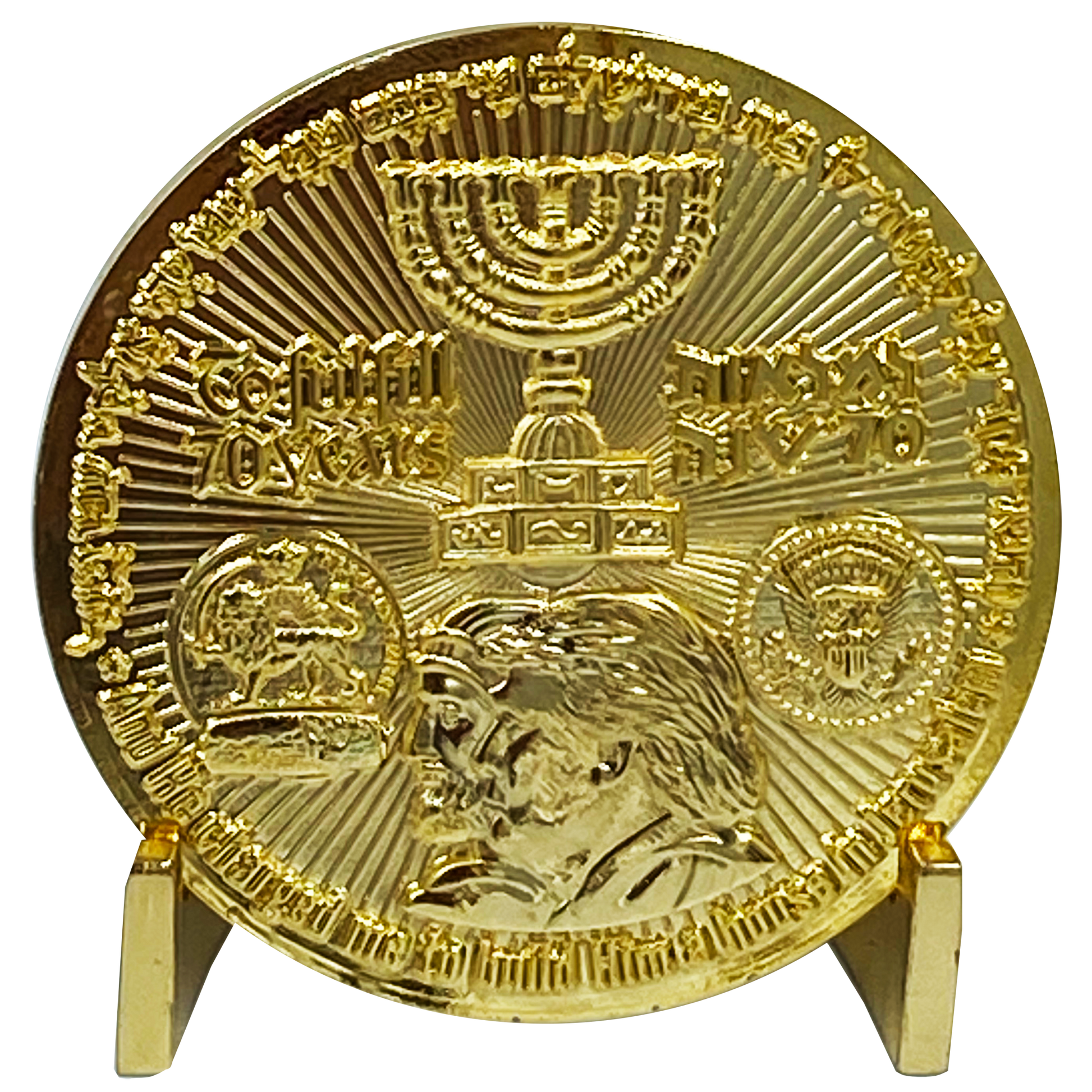 MM-013 Rare 24KT Gold Plated Trump Israel Jerusalem MAGA Temple Challenge Coin 70 years Embassy