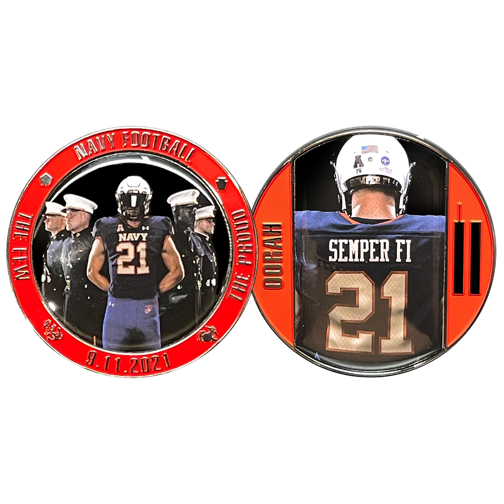 BL17-010 Navy Athletics Football September 11th Semper Fi Marines Uniform Challenge Coin