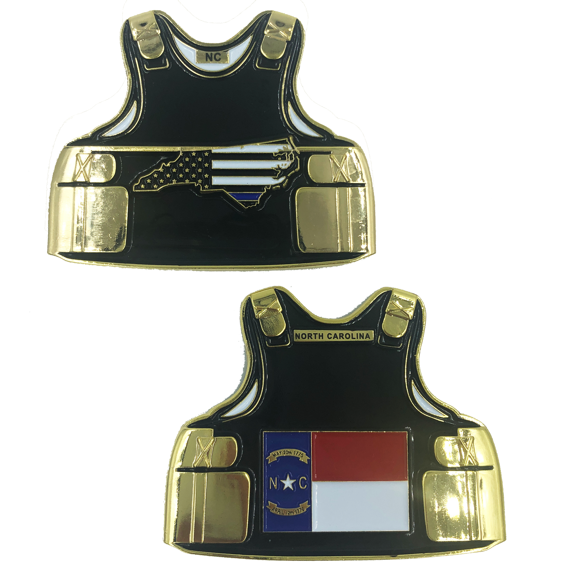 B-012 North Carolina LEO Thin Blue Line Police Body Armor State Flag Challenge Coins