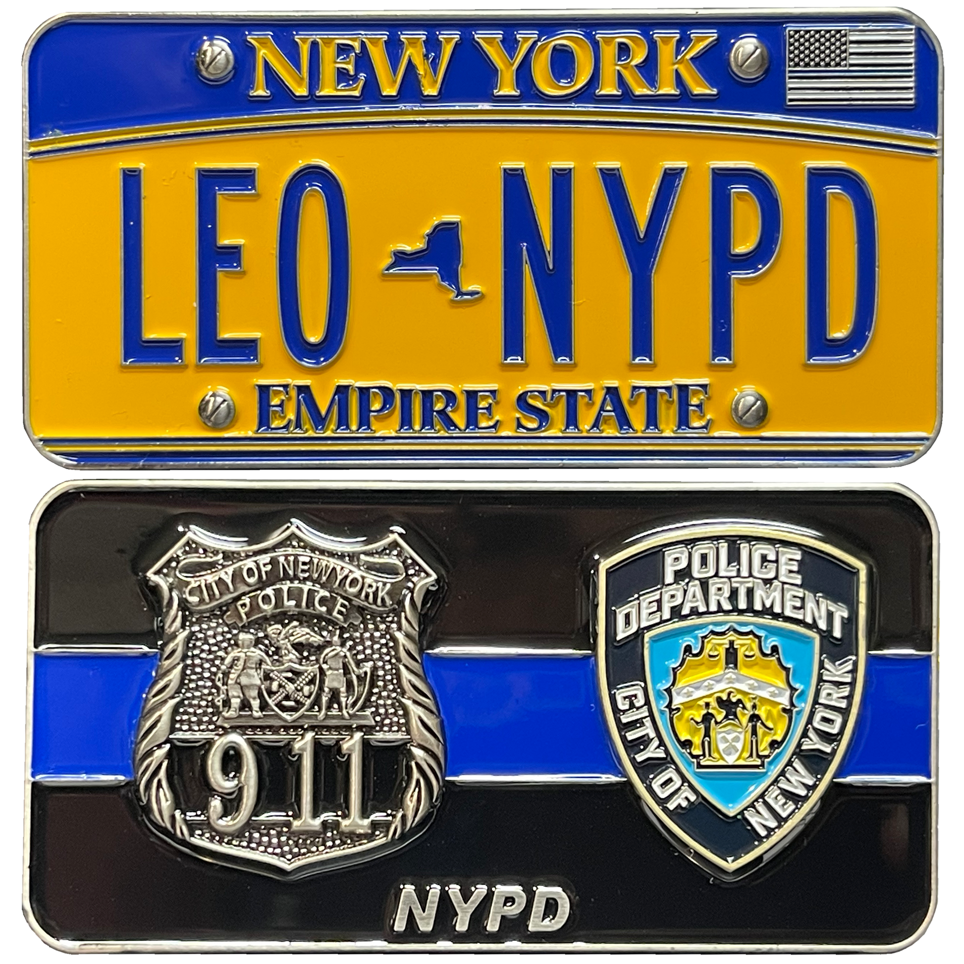 BL14-006 NYPD New York License Plate Thin Blue Line Police Officer Challenge Coin