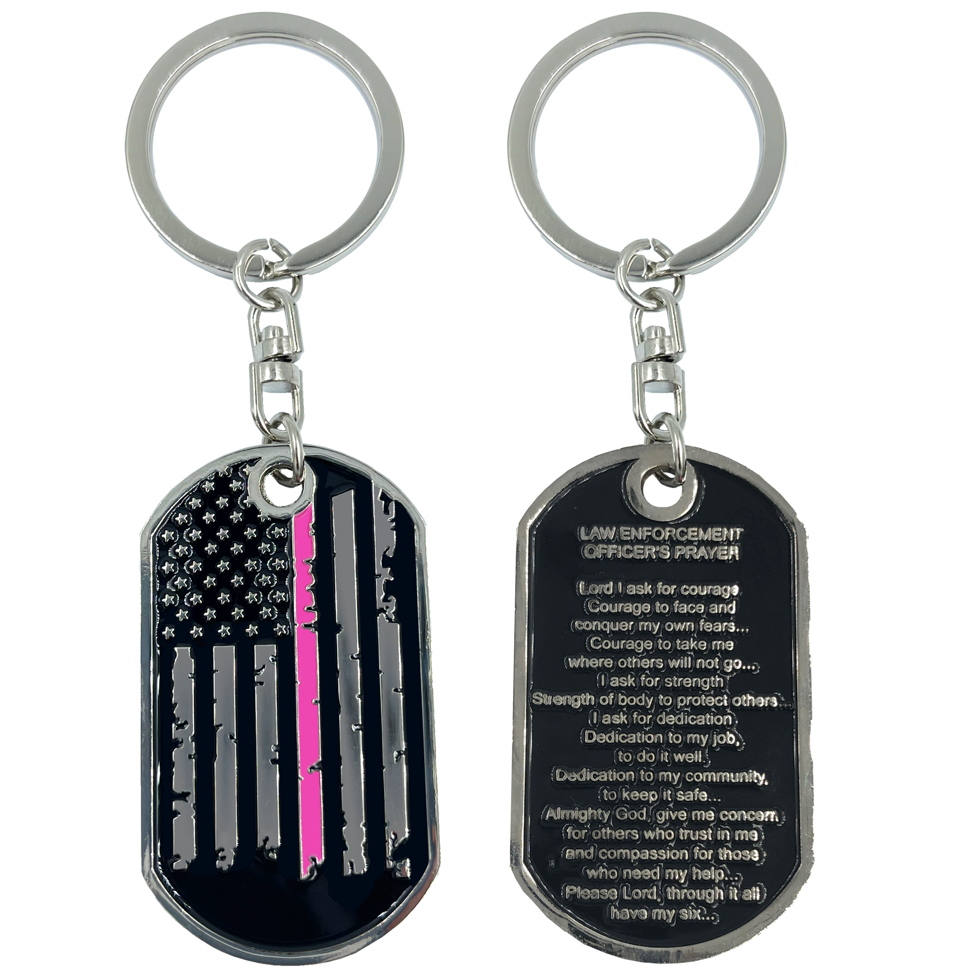 FF-009 Police Officer's Prayer Breast Cancer Awareness Thin Pink Line Challenge Coin Dog Tag Keychain Police Law Enforcement