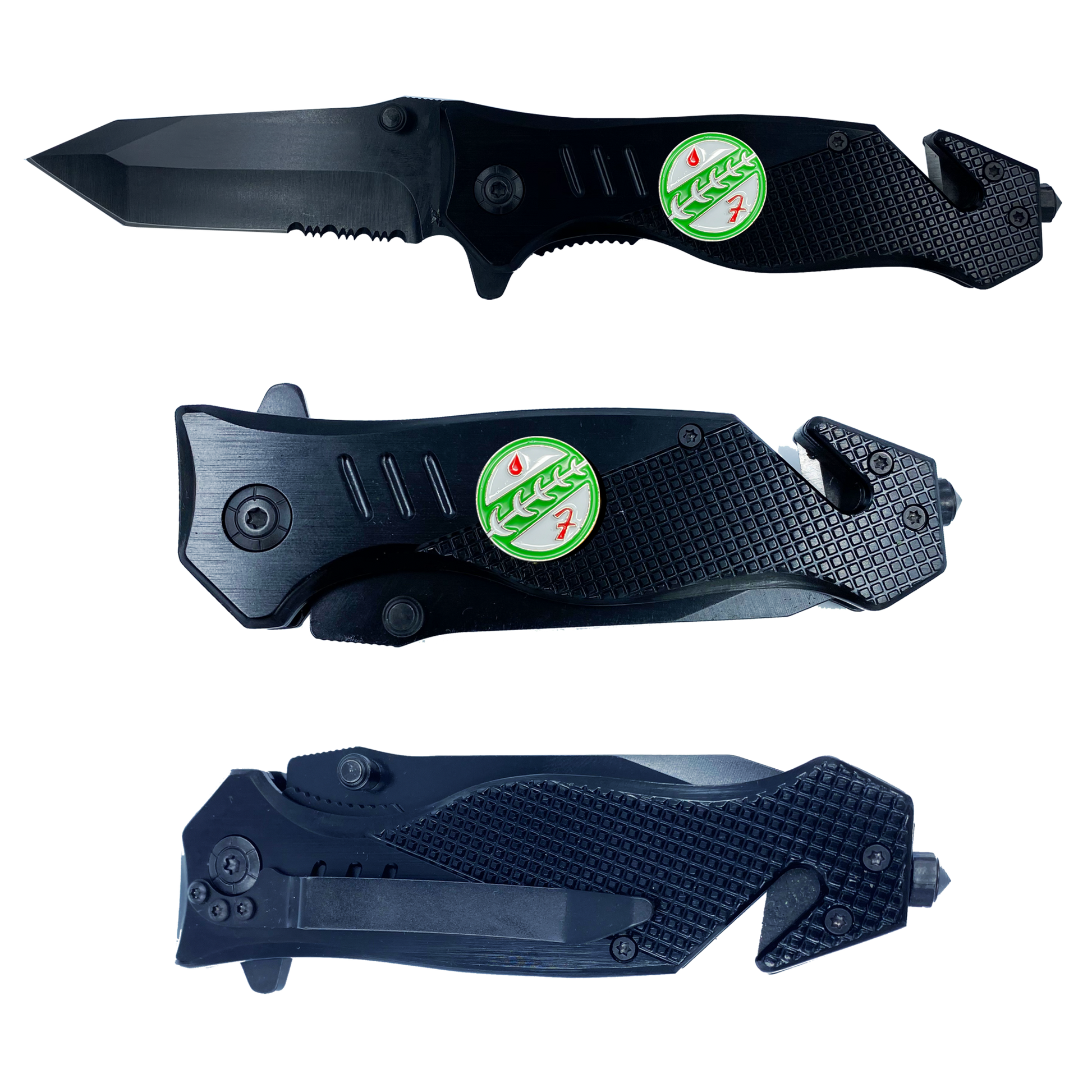 Bounty Hunter 3-in-1 Police Tactical Rescue knife tool with Seatbelt Cutter, Steel Serrated Blade, Glass Breaker Patrol Agent CBP
