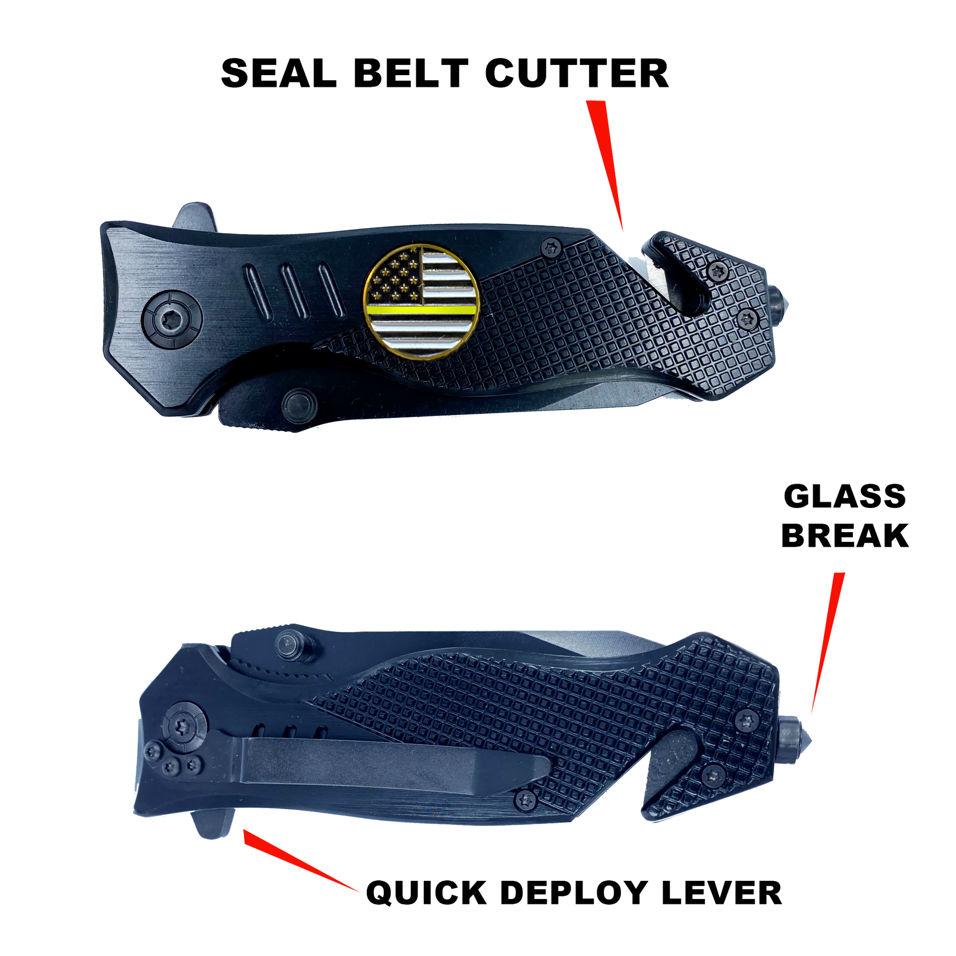 Thin Gold Line Police collectible 3-in-1 Tactical Officer Rescue tool with Seatbelt Cutter, Steel Serrated Blade, Glass Breaker 911 Emergency Dispatcher thin yellow line