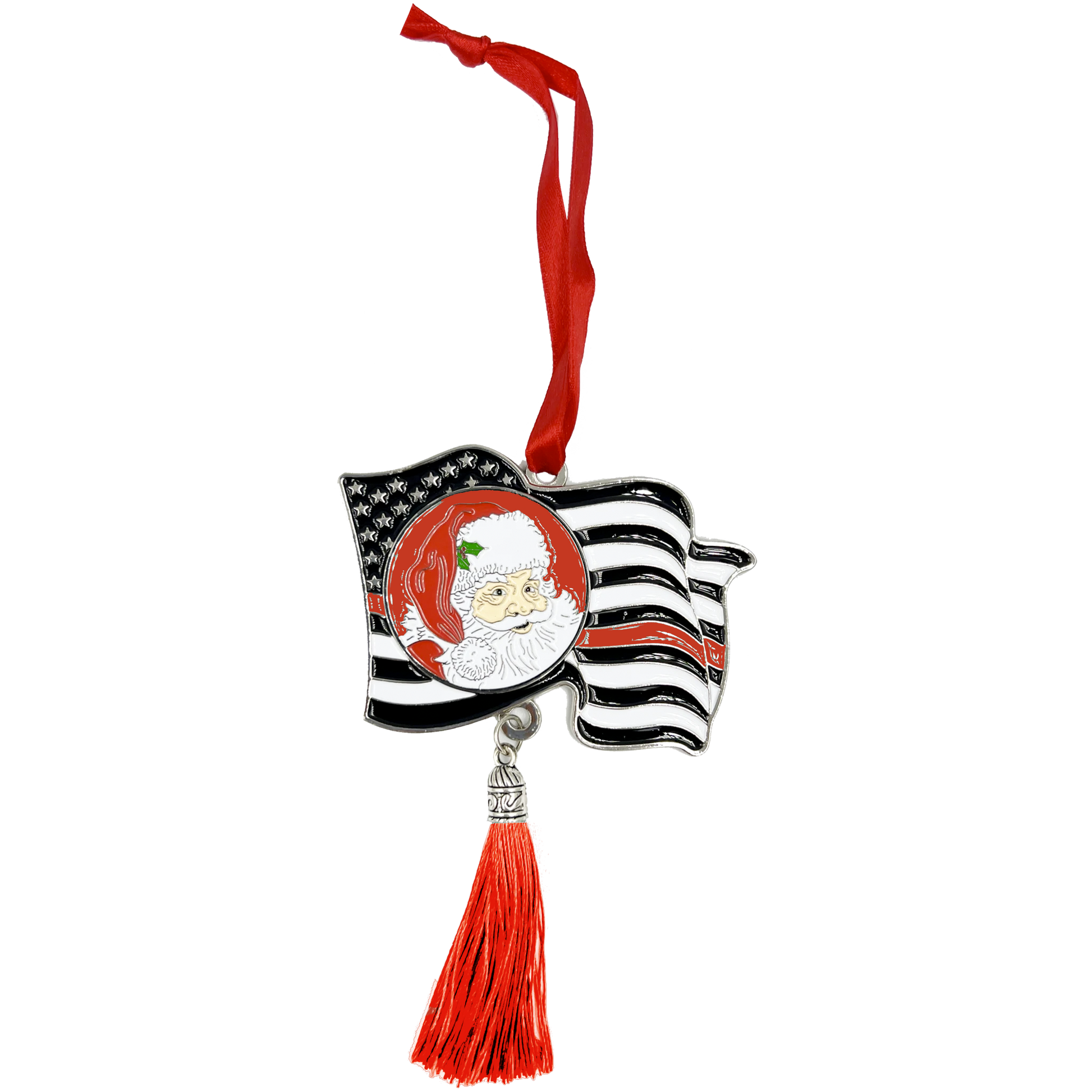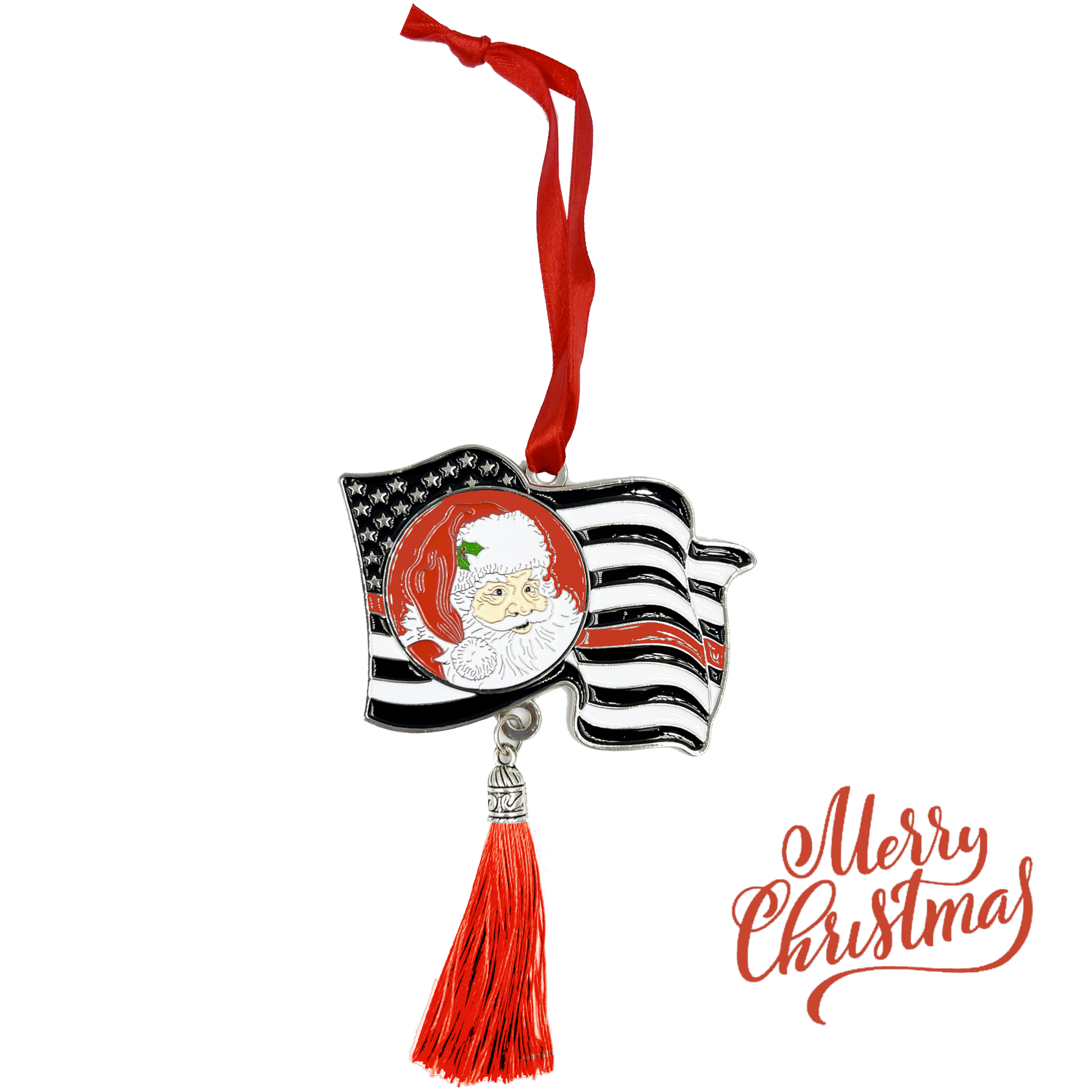 GL3-019 Thin Red Line Flag Merry Christmas Ornament Fire Fighter Firefighter Fire Department