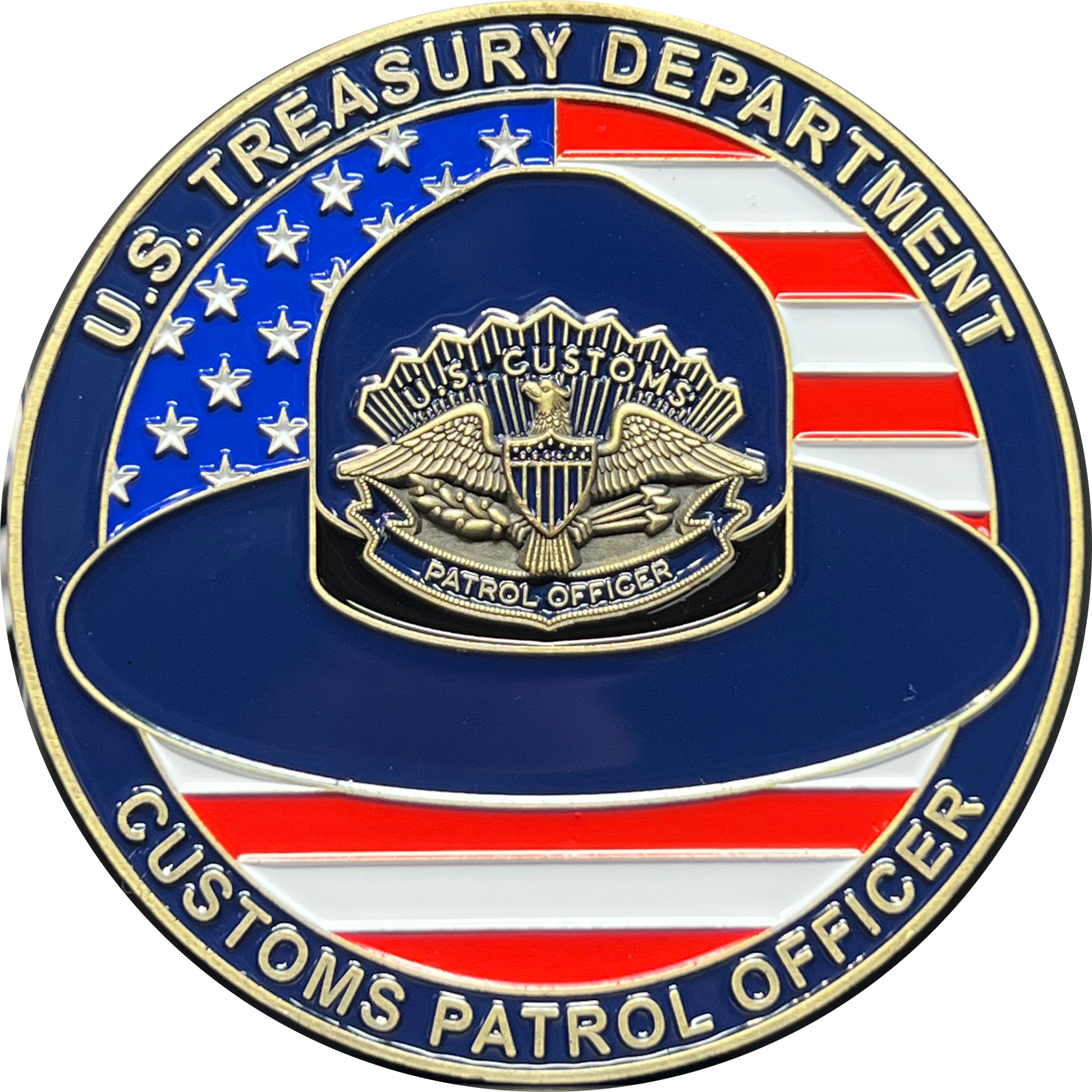 discontinued EL12-002 US Customs Inspector and Custom Patrol Officer Campaign Hat Challenge Coin before CBP USCS