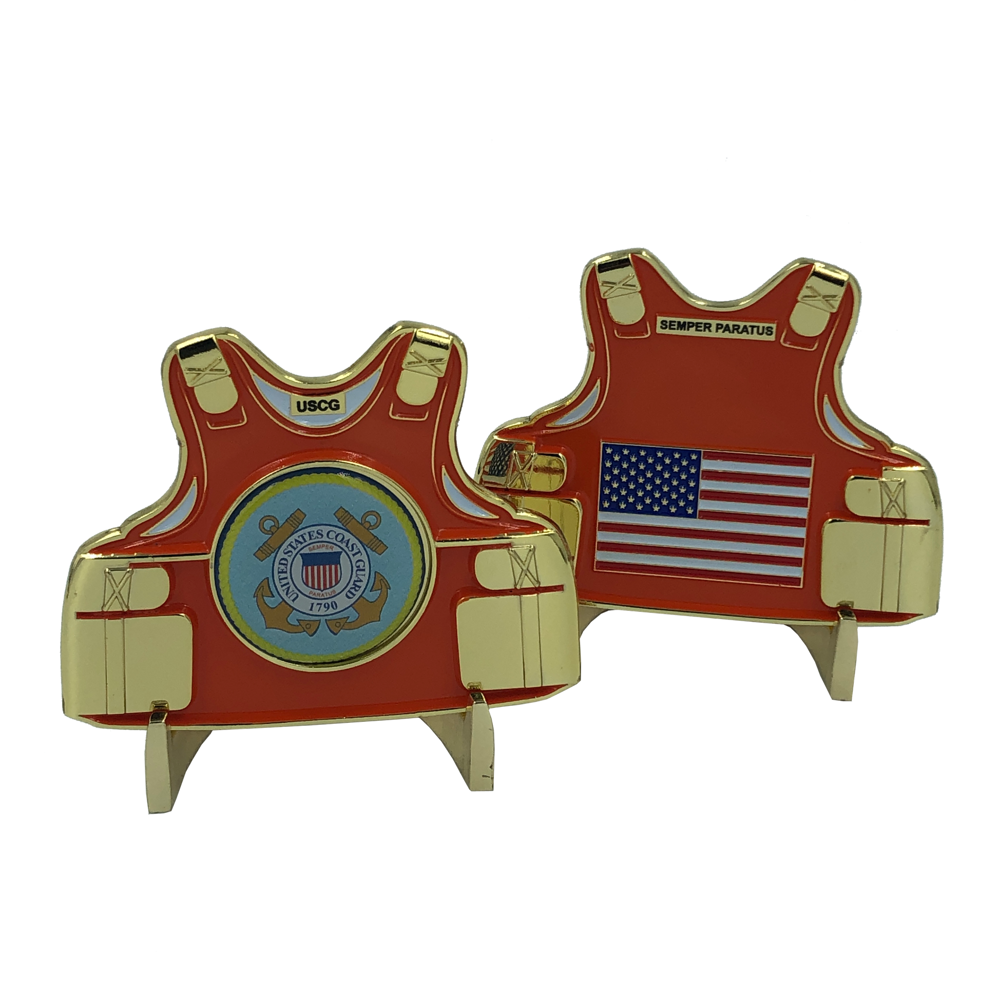 Orange 2.5 inch body armor engraved USCG and SEMPER PARATUS